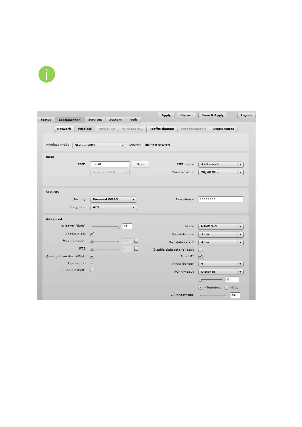 Figure 27 – Station Wireless Settings