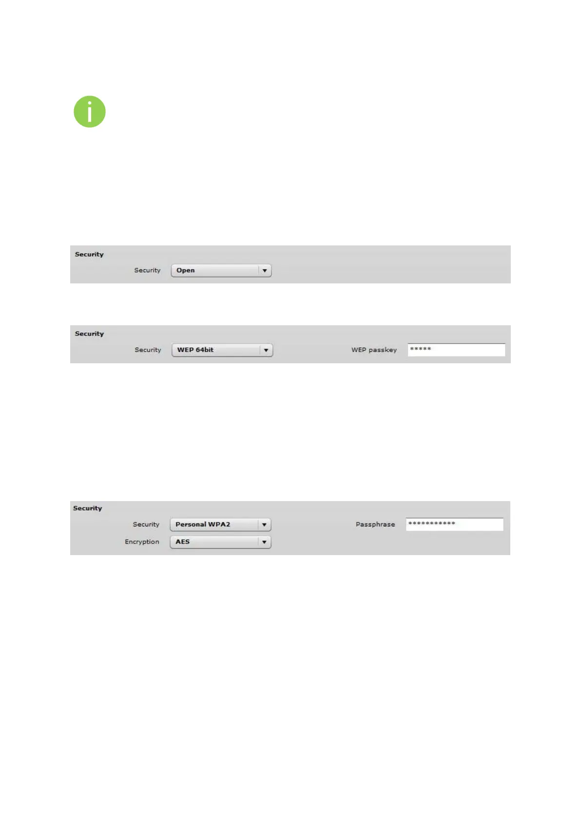 WEP passkey – specify the passkey, for the chosen WEP security: