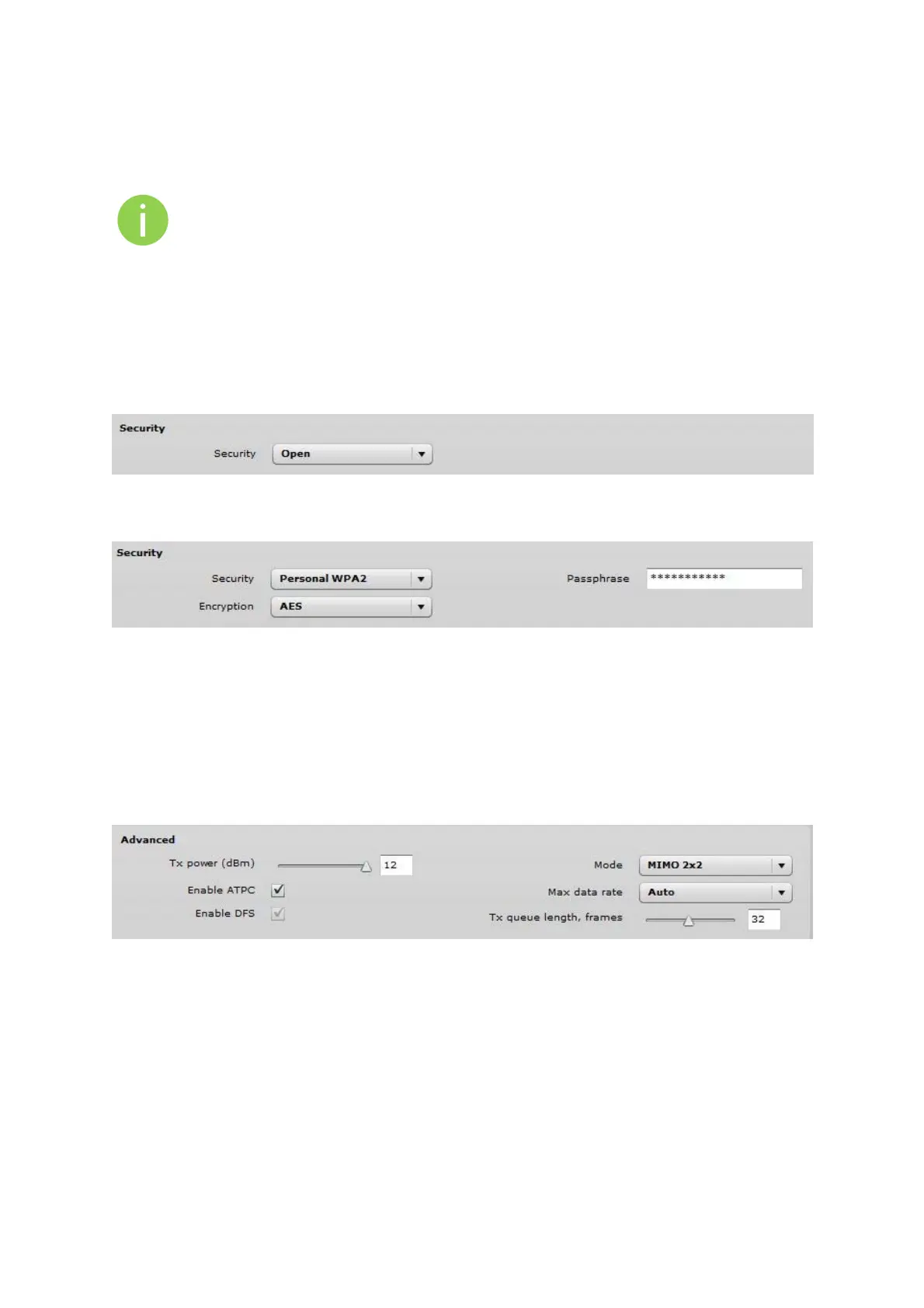 the distance, the higher transmit power is required. To set transmit power level use the slider or enter