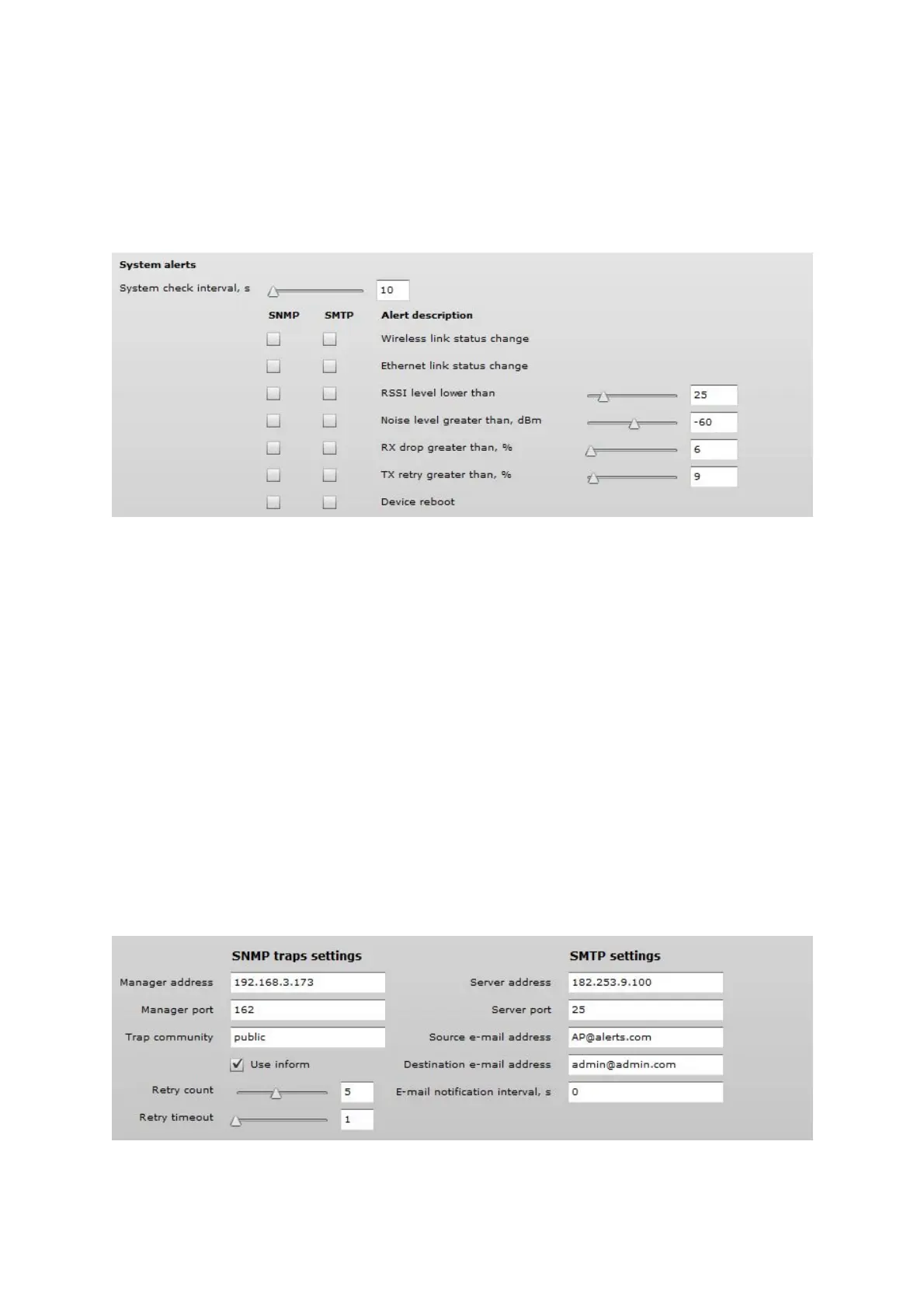 Figure 49 – Device Alerts: SNMP Traps and SMTP Configuration