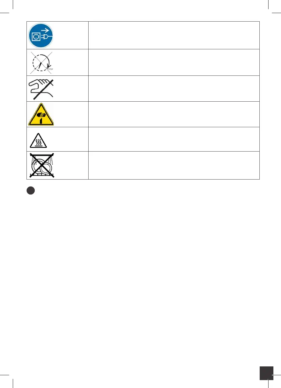 CAUTION: Danger of overheating if maximum operating time is surpassed or hot content is grinded.