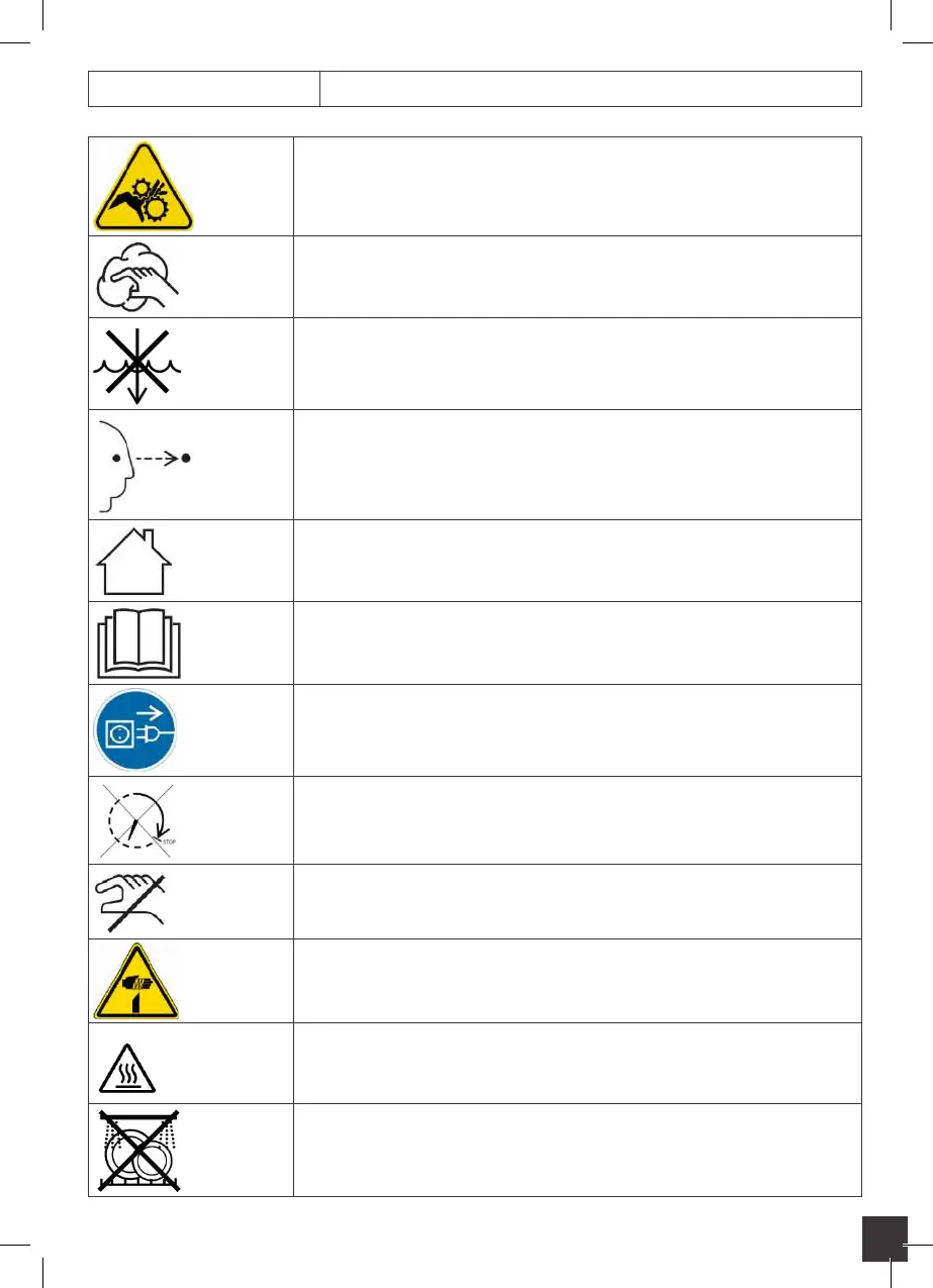 ВНИМАНИЕ! Ротирачки делови. Да не се допира, чисти или заменуваат делови додека кабелот од уредот не се извади од