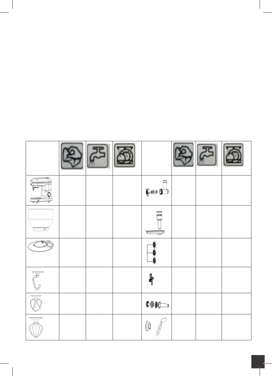 MĖSOS MALIMO IR DEŠRELIŲ GAMINIMO PRIEDAI: sraigto korpuso (14), veržlės (18), sraigto (15), malimo sietelių (17) NEGALIMA PLAUTI INDAPLOVĖJE. Plaukite šias dalis