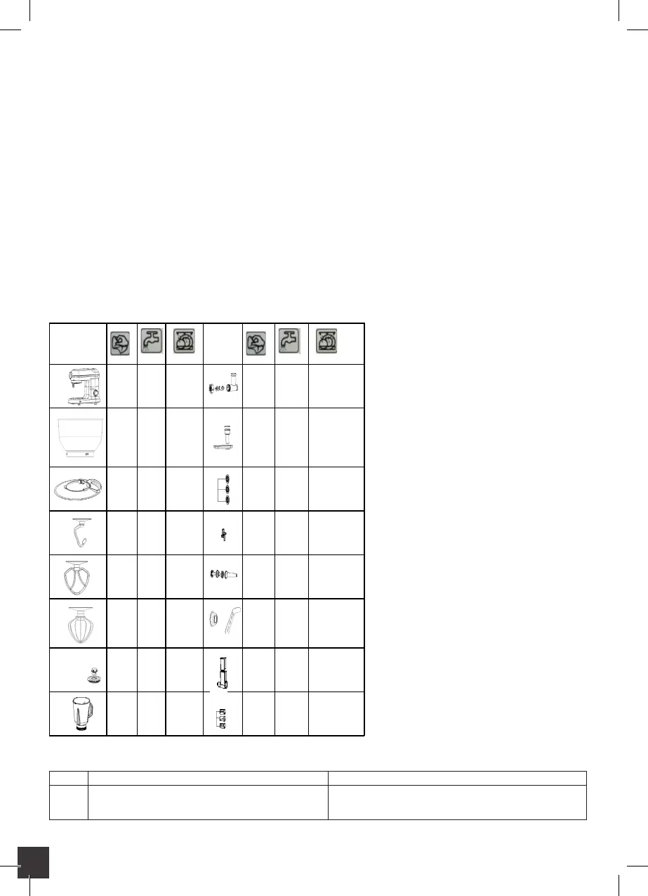 NASTAVKA ZA MLETJE MESA IN OBLIKOVANJE KLOBAS: ohišje nastavka za mletje (14), obroč za pritrjevanje (18), in diski za mletje (17) NISO PRIMERNI ZA STROJNO POMIVANJE.