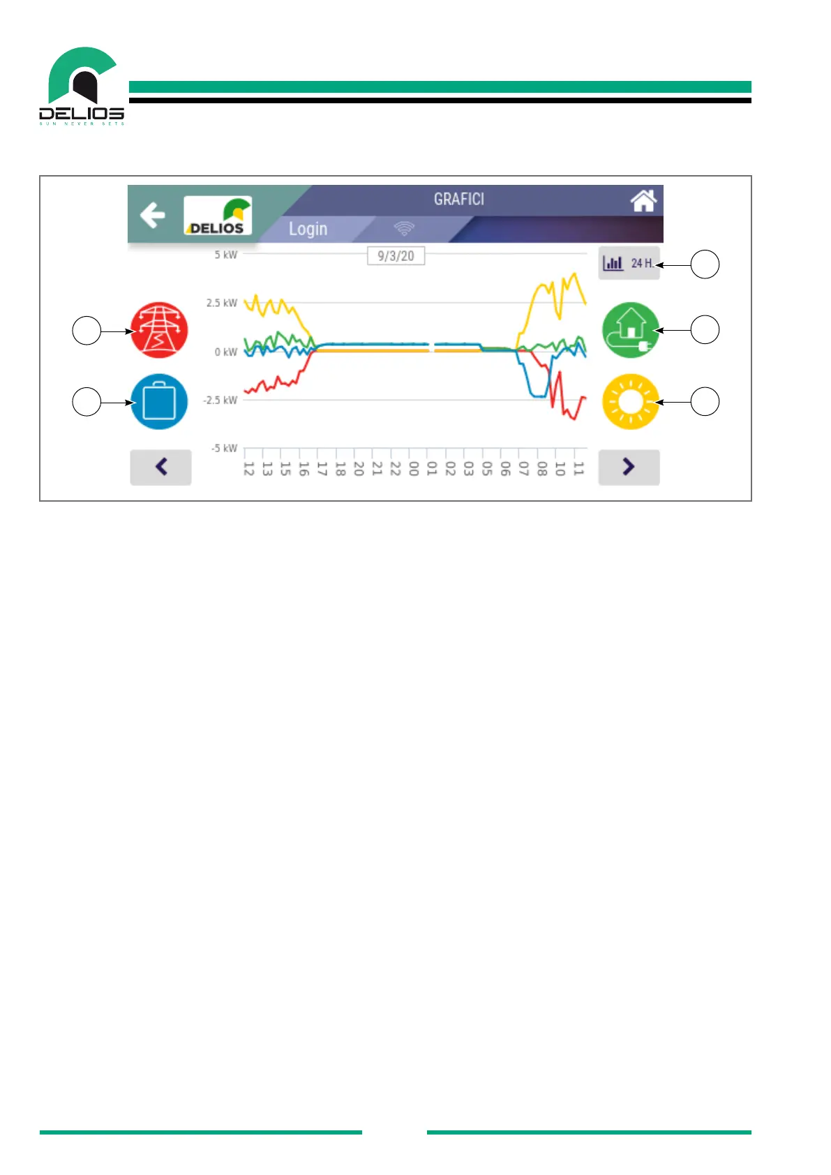5. "BATTERY" key - Press this key to enable / disable the display of the associated value and trace on