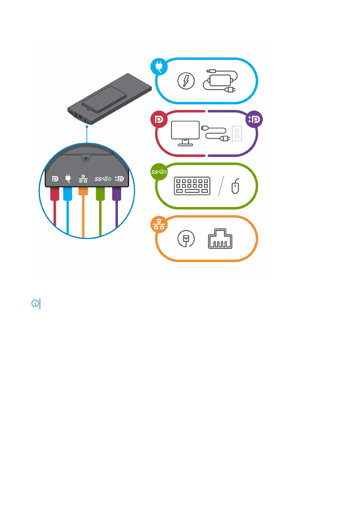 NOTE: All the cables and ports are used depending on the peripherals chosen and the configuration of the computer.