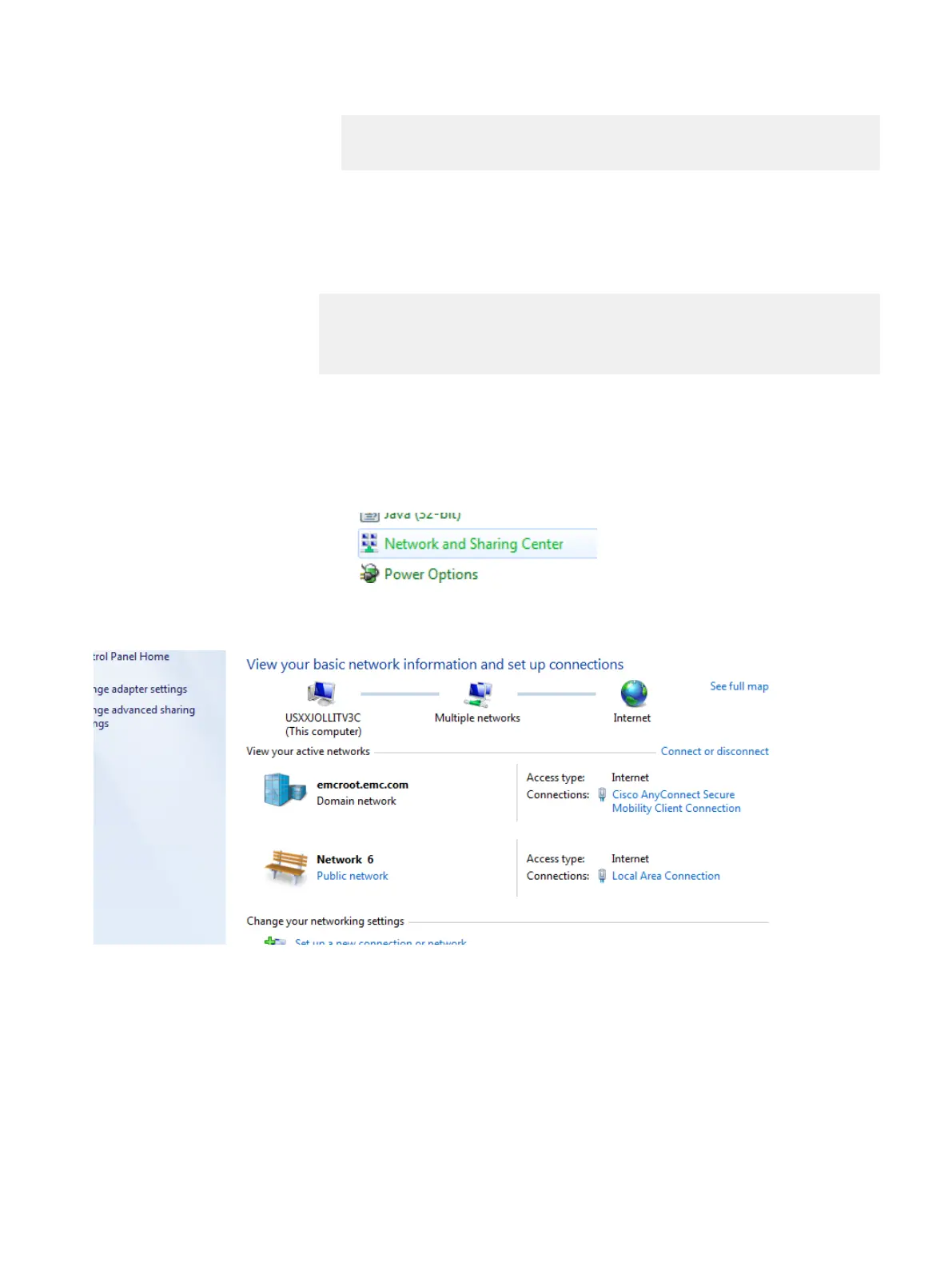 c. Open the Network Sharing Center and in the View your active networks