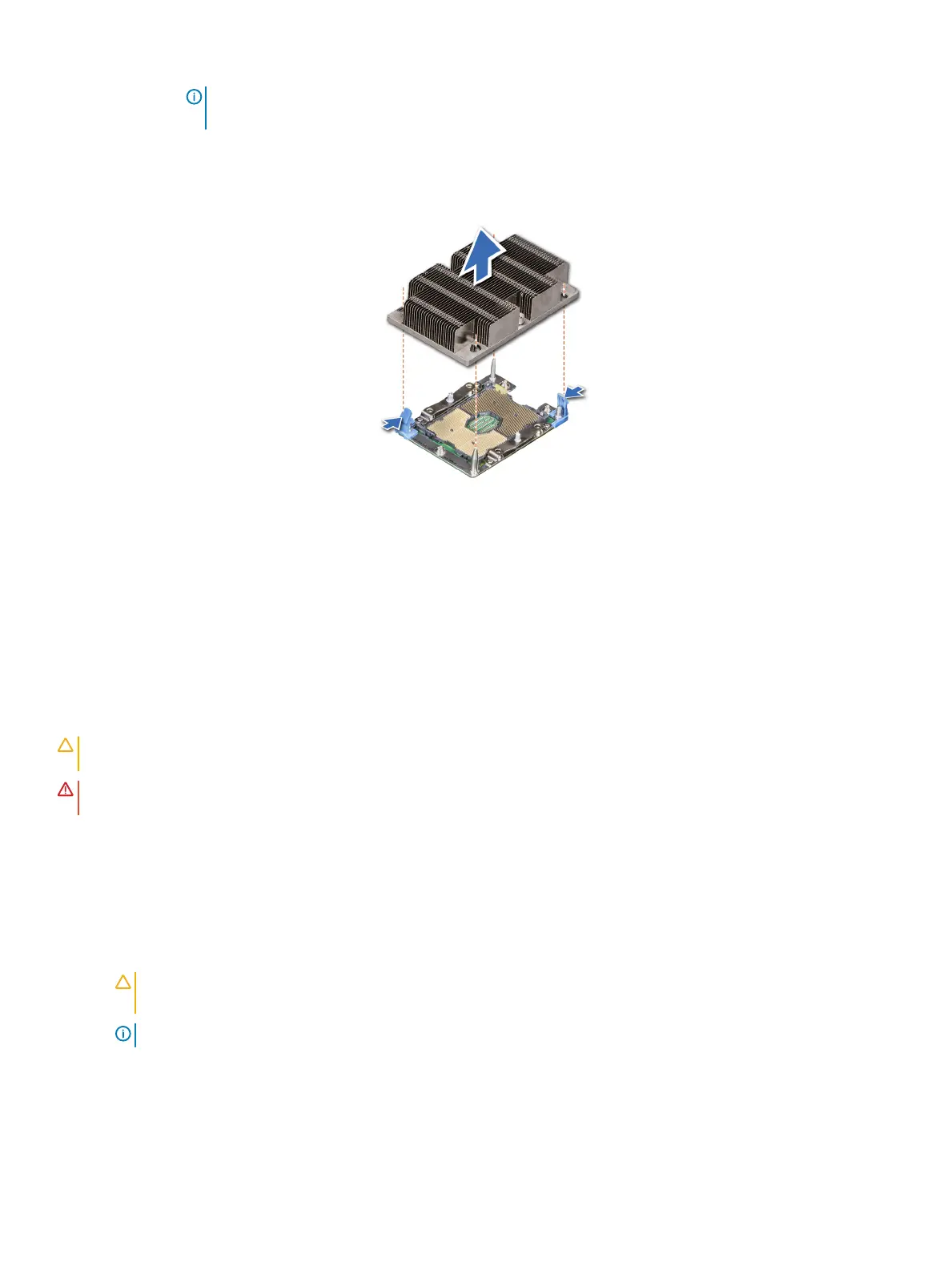 NOTE: It is normal for the heat sink to slip o the blue retention clips when the screws are partially