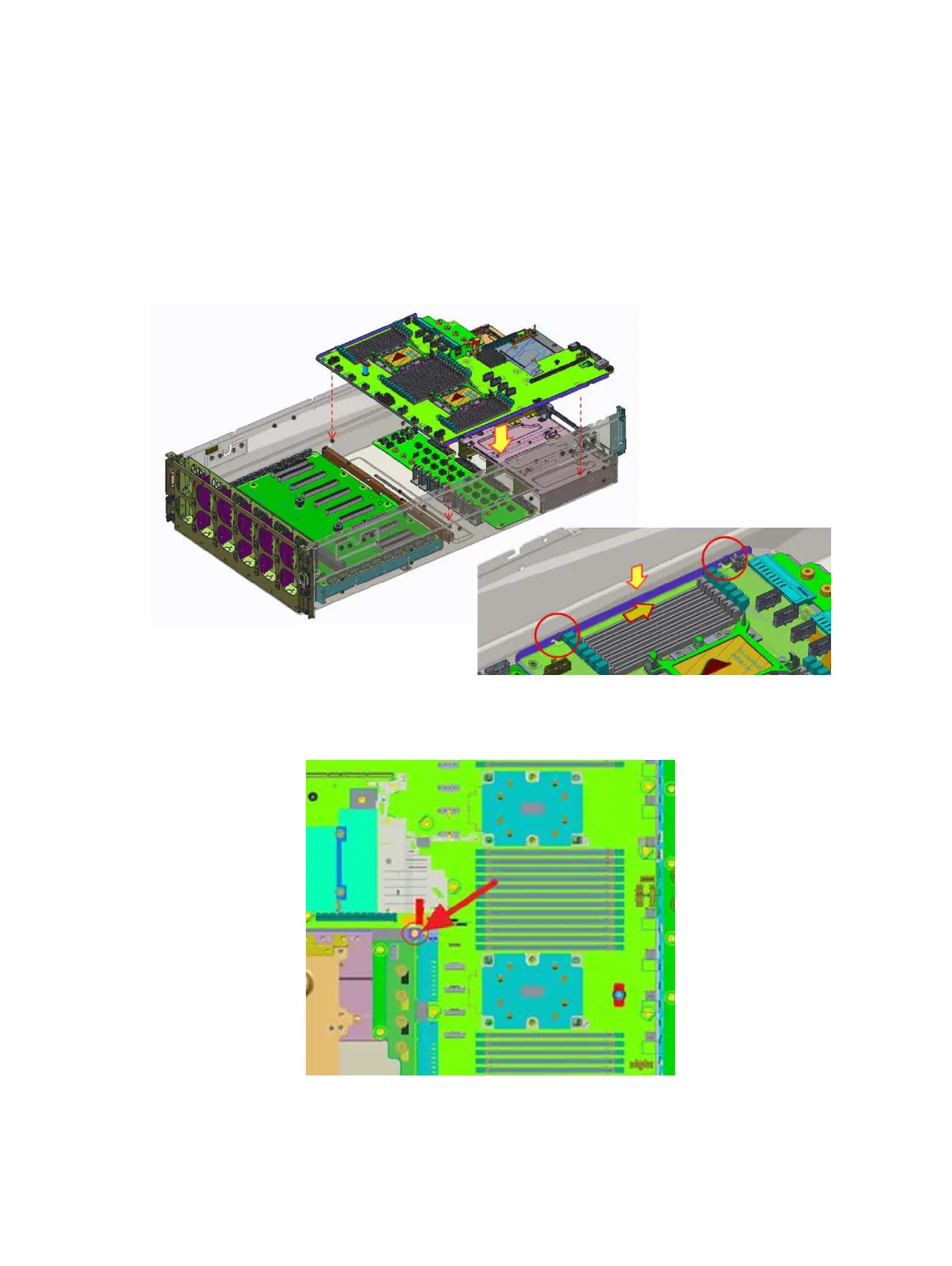 1 Align the location pin to install system board tray module.