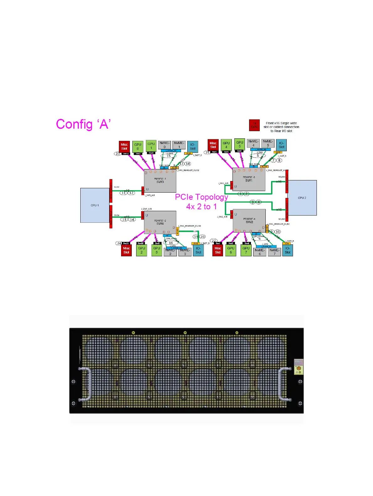 graphics processing unit (GPGPU), 8x NVMe, 4x (center) + 4x (right, optional) rear-PCIe slots and upstream the 14G leveraged