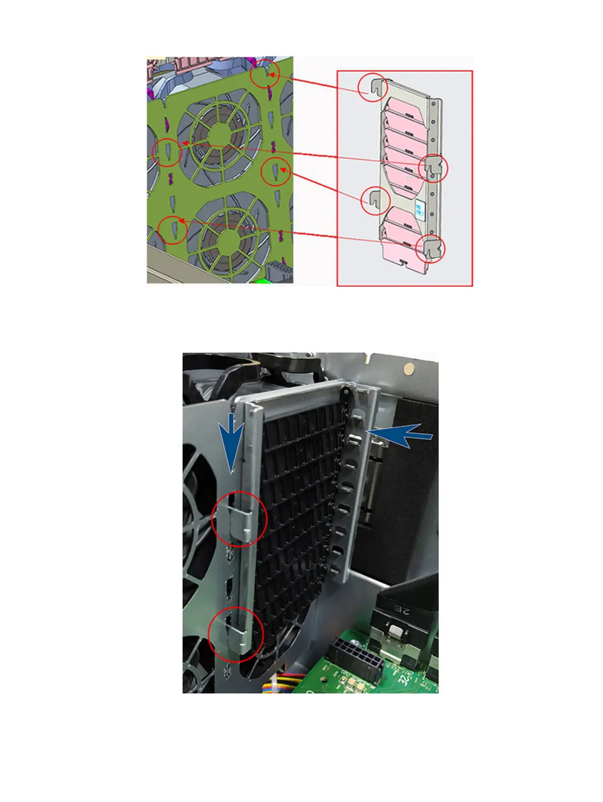 2 Hook the fan louver to the fan cage assembly.