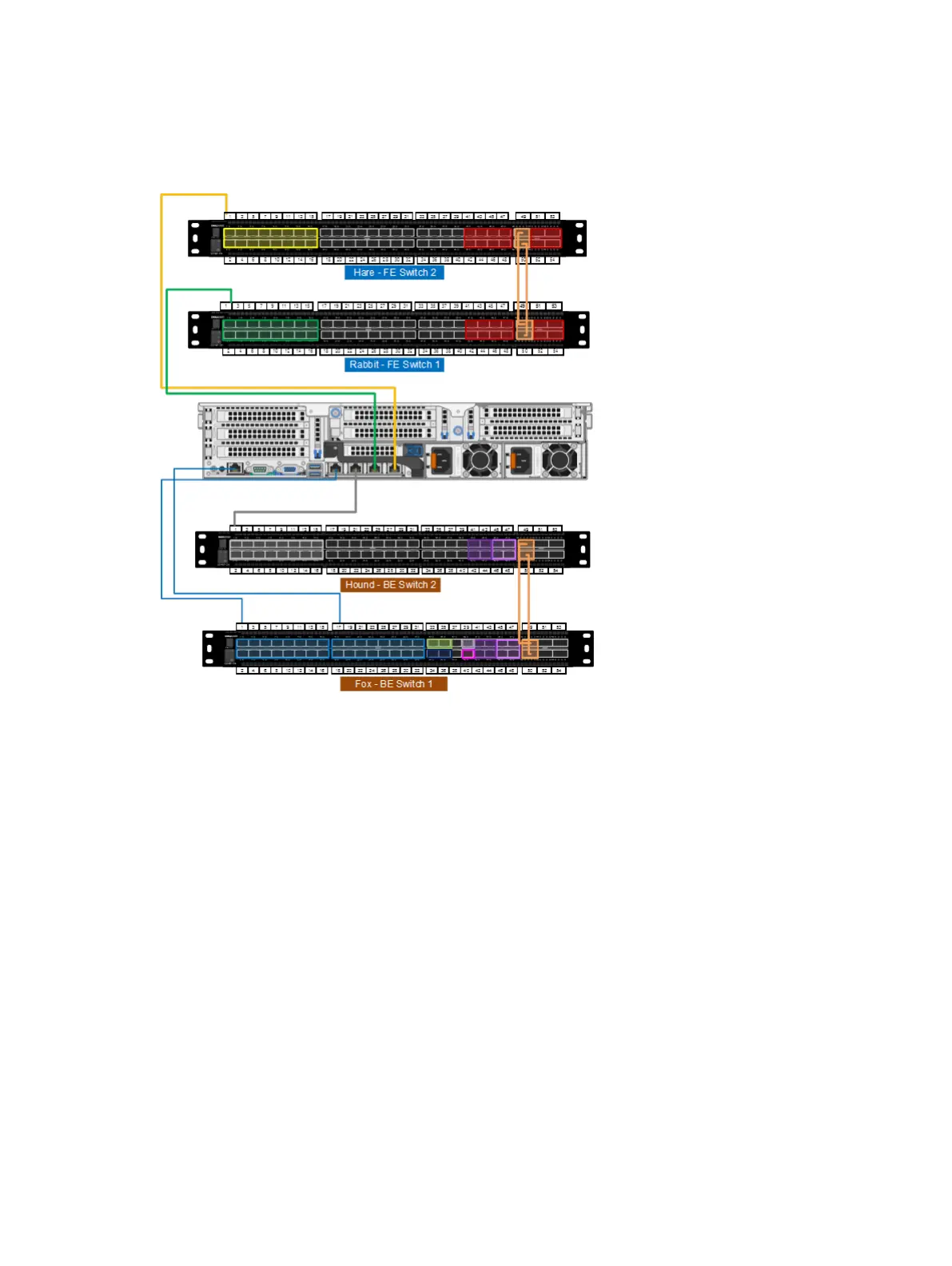 Dell EMC EX500 - Front-End and Back-End Switch Connections to an EX300 Node
