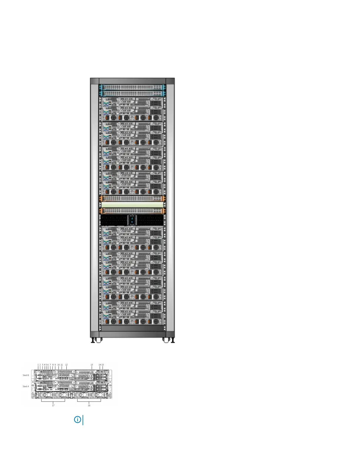 Dell EMC EX500 - Server Rear View; EX3000 D Server Rear View in Rack; Back-Panel Features and Indicators