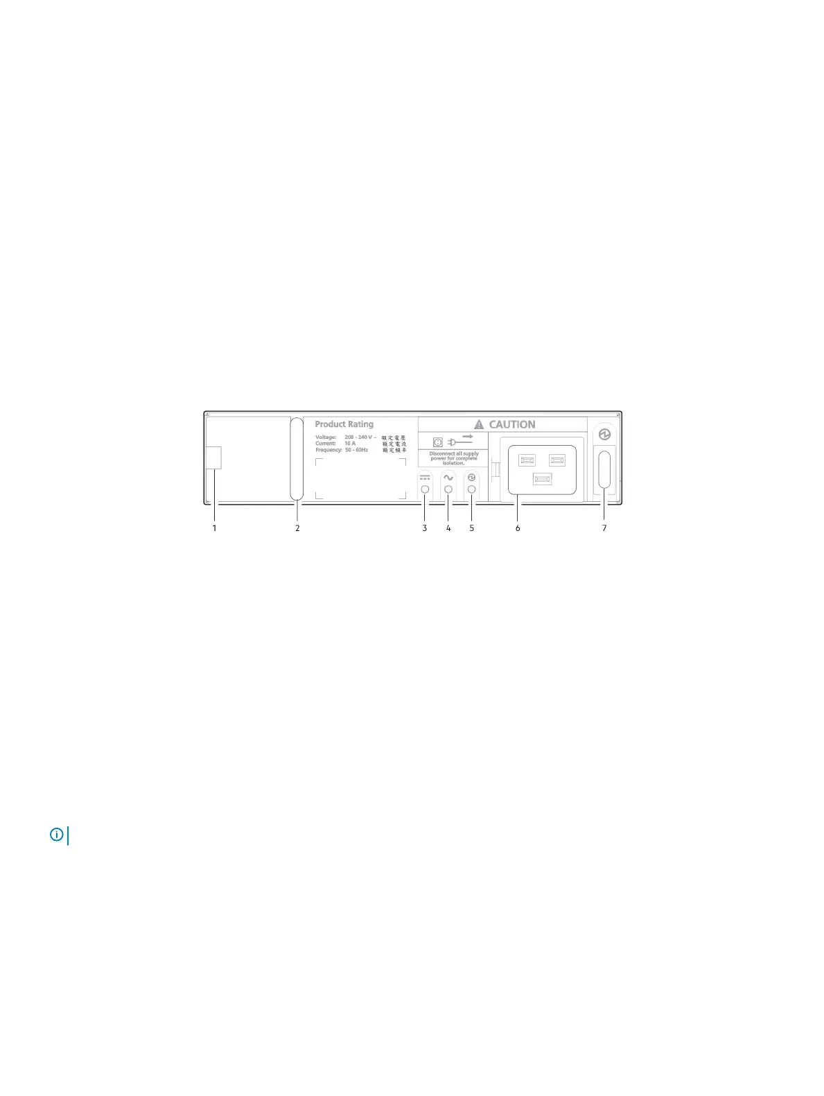 : The product rating label on the PSU faceplate may show voltage of 200–240 V and current of 13 A.
