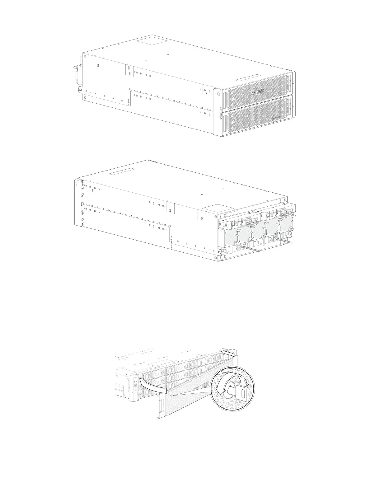 Figure 7. Attaching or removing the 2U enclosure front bezel