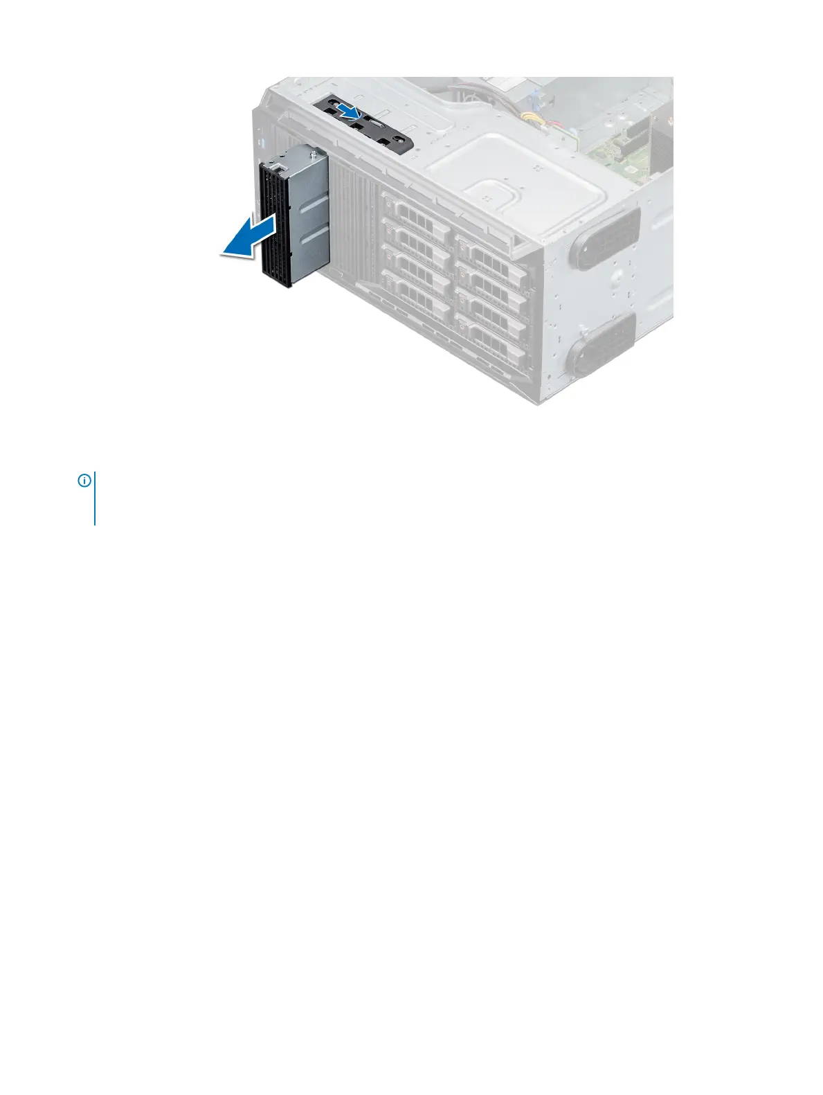NOTE: Blanks must be installed on empty optical drive or tape drive slots to maintain FCC certication of the system. The