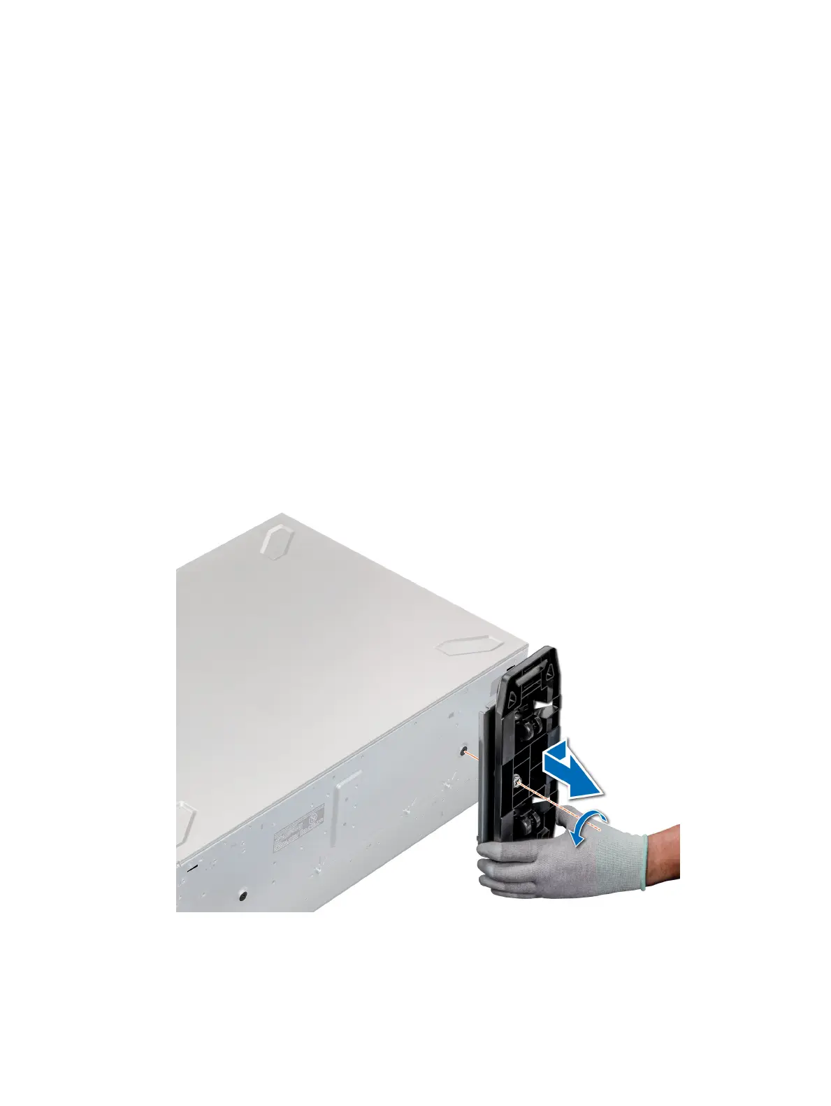 1 Using the Phillips #2 screwdriver, loosen the captive screw that secures the front wheel unit to the base of the system.