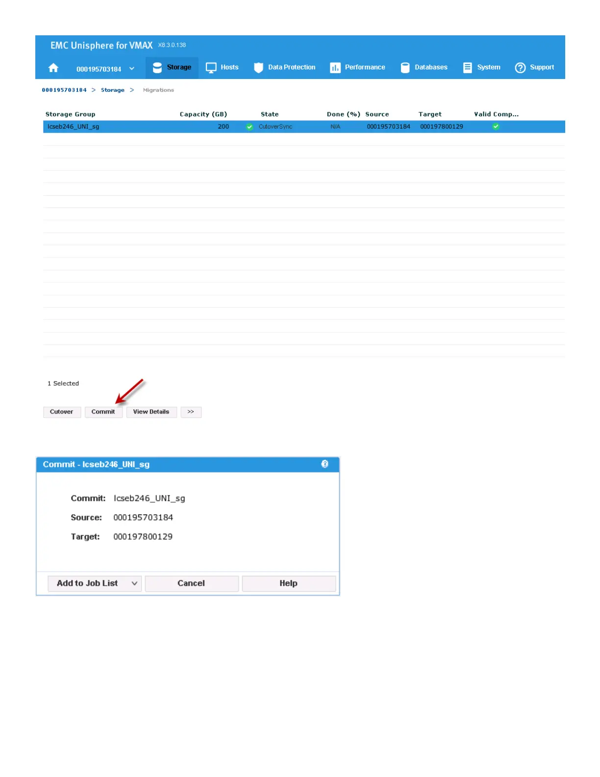 After the commit operation succeeds, the migration is complete.
