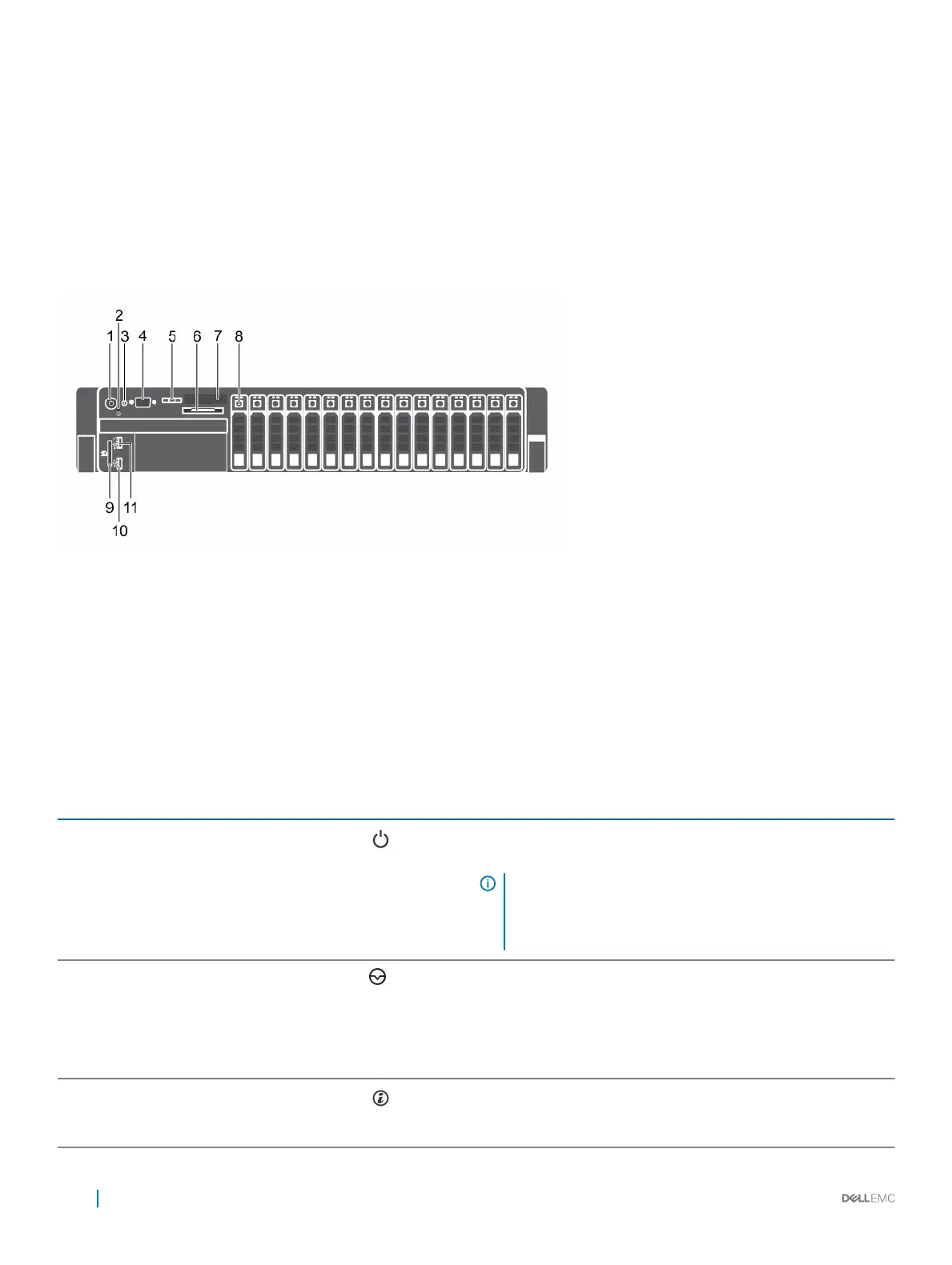 Table 1. Front panel features of 16 x 2.5-inch hard drive chassis