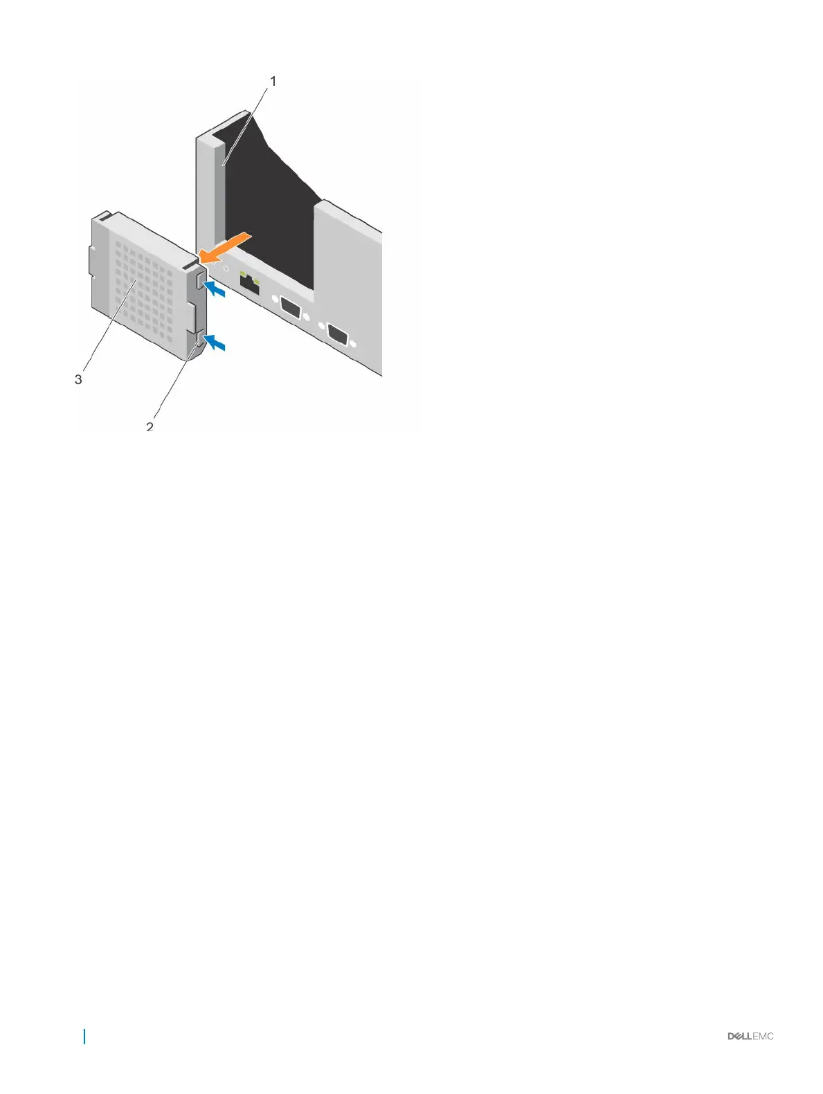 To install the riser 1 blank, align the blank with the slot on the chassis and insert it into the chassis until it clicks into place.