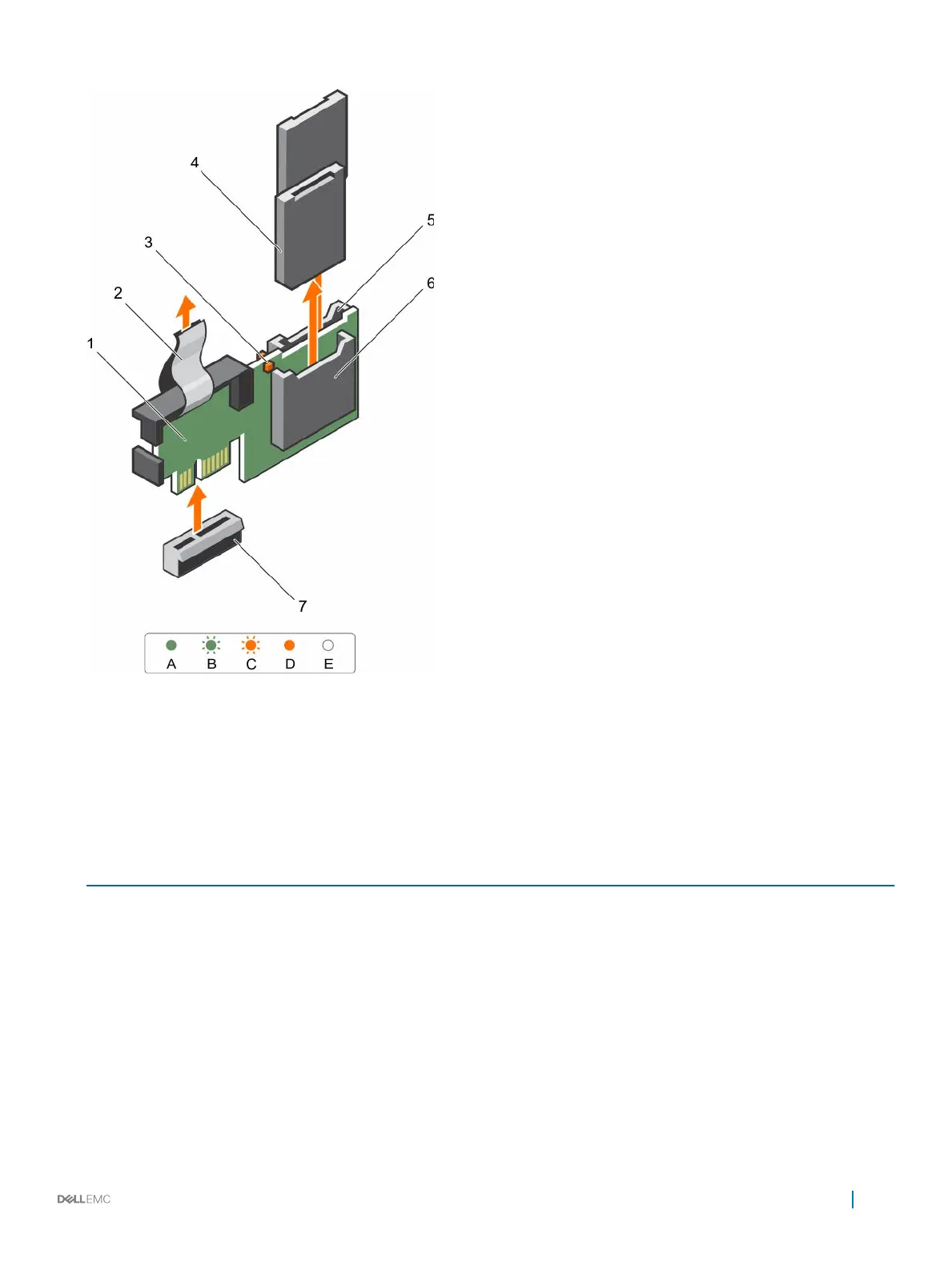 D Amber Indicates that the card is offline, has failed, or is write protected.