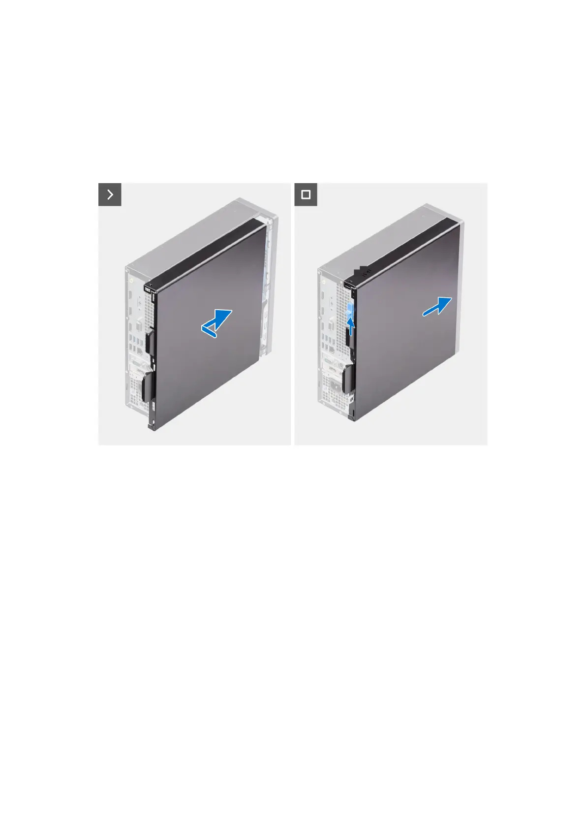 2. Far scorrere il coperchio laterale verso la parte anteriore del computer fino a quando non viene emesso un clic dal fermo di