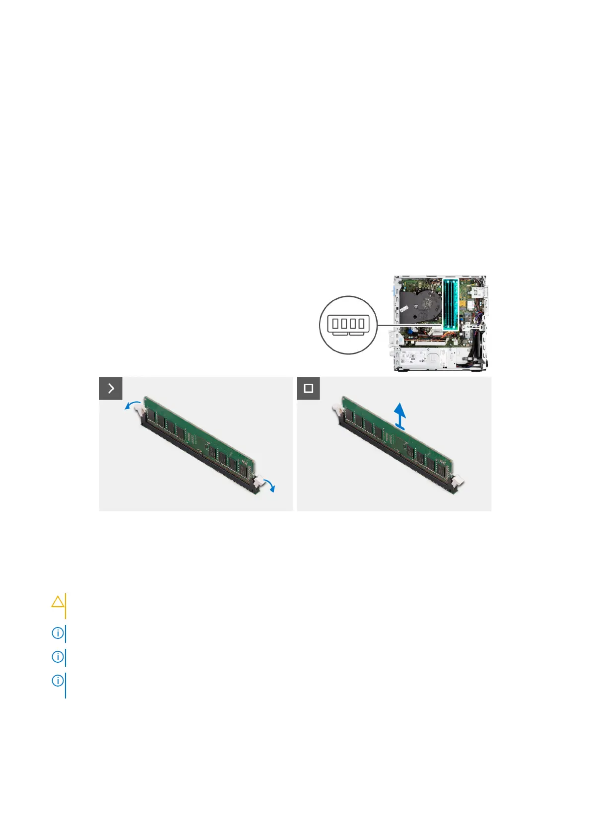 N.B.: Se si ha difficoltà a rimuovere il modulo di memoria, muoverlo delicatamente avanti e indietro per estrarlo dallo