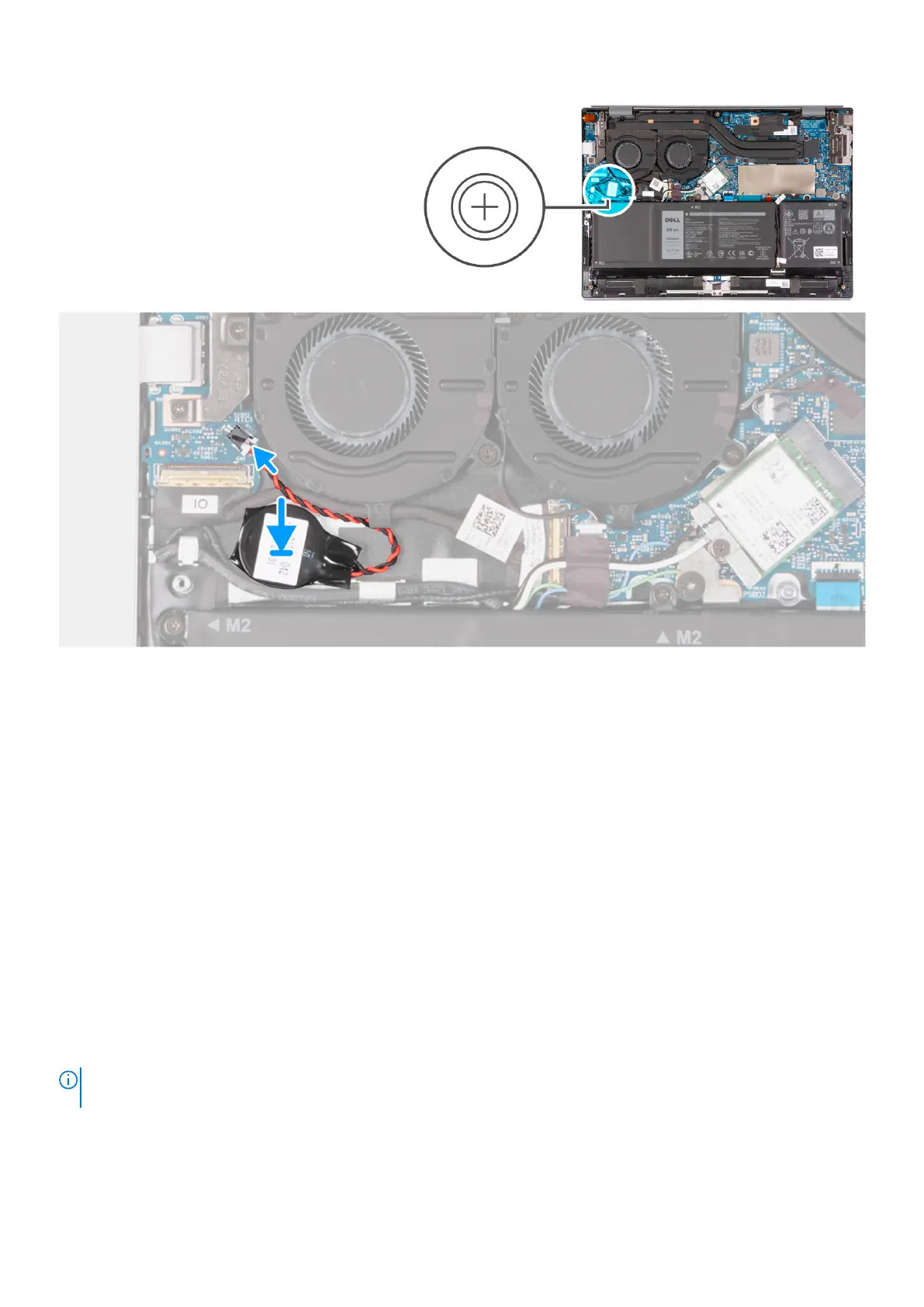 1. Adhere the coin-cell battery to the slot on the palm-rest and keyboard assembly.