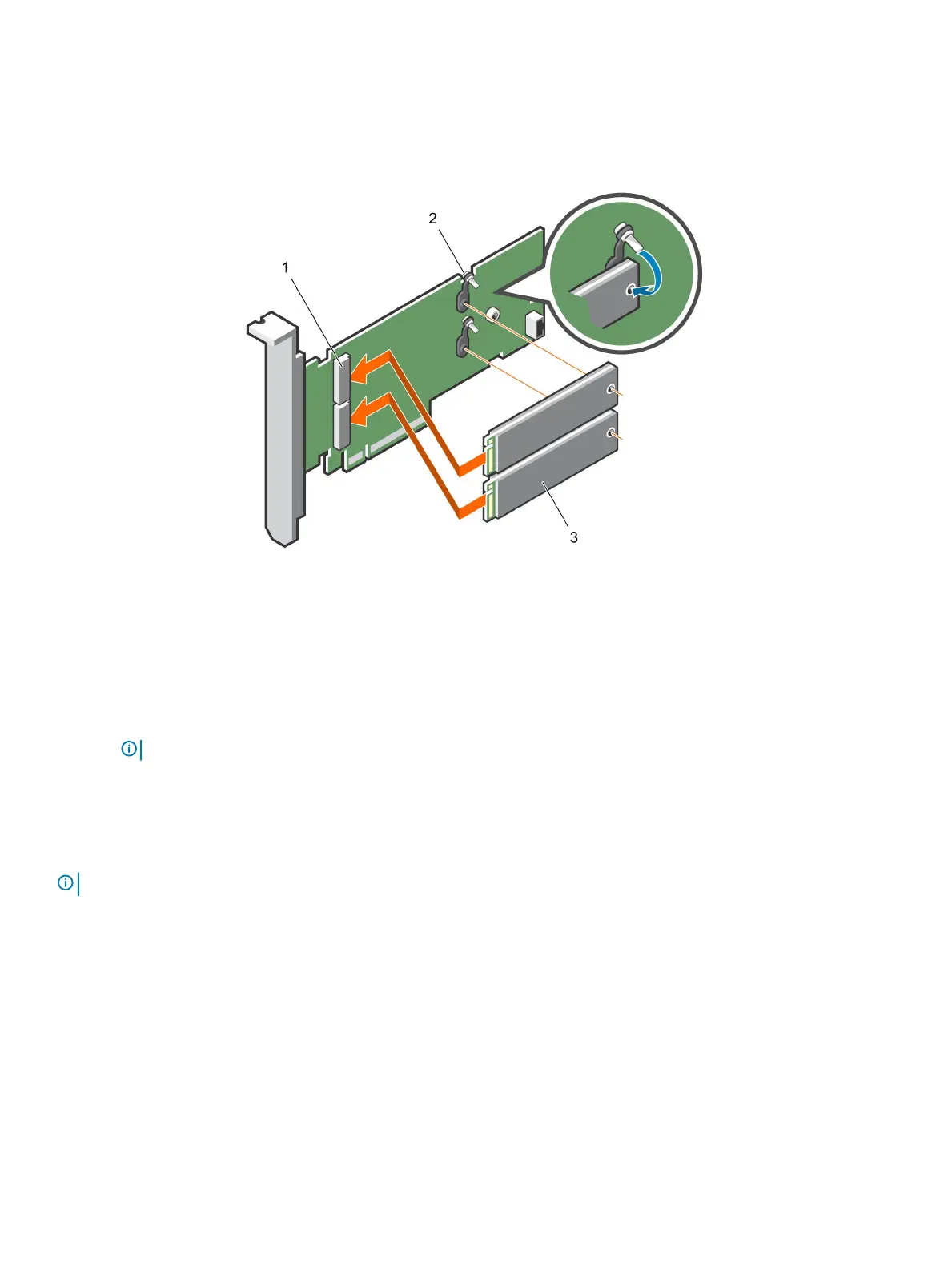 1 Align the M.2 SSD module connectors with the connectors on the BOSS card.