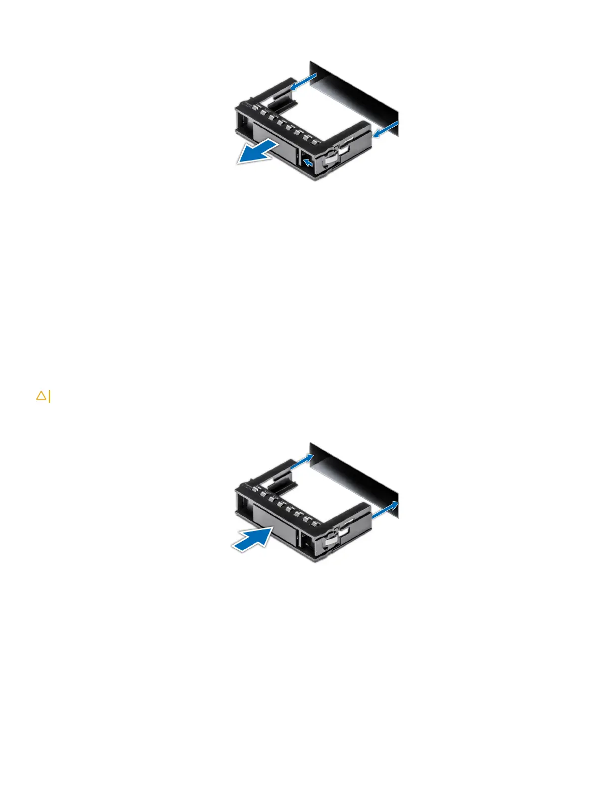 The procedure for installing 2.5 inch and 3.5 inch drive blanks is identical.