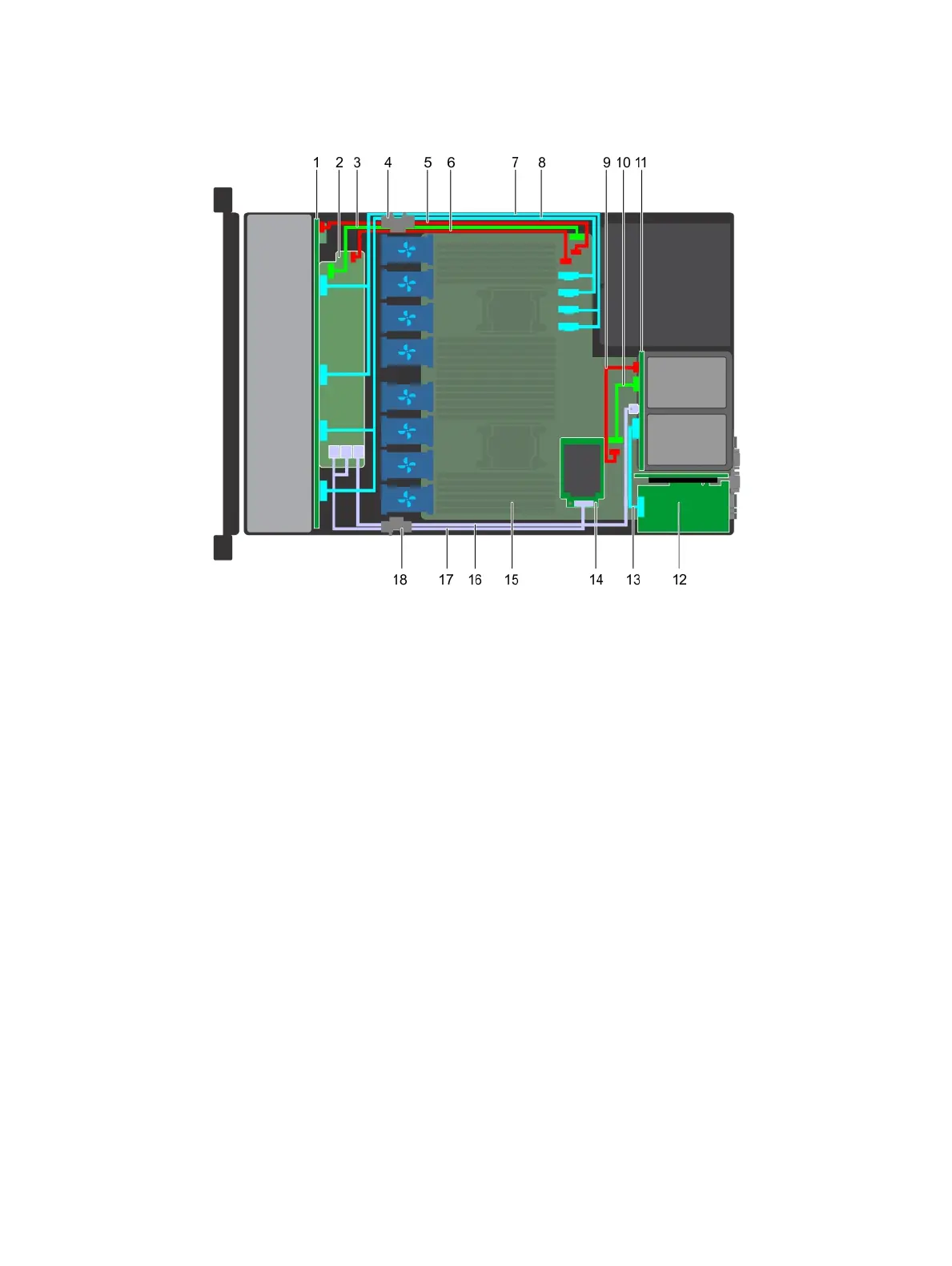 Figure 87. Cable routing - 10 x 2.5 drive backplane and 2 x 2.5 rear drive backplane with mini PERC