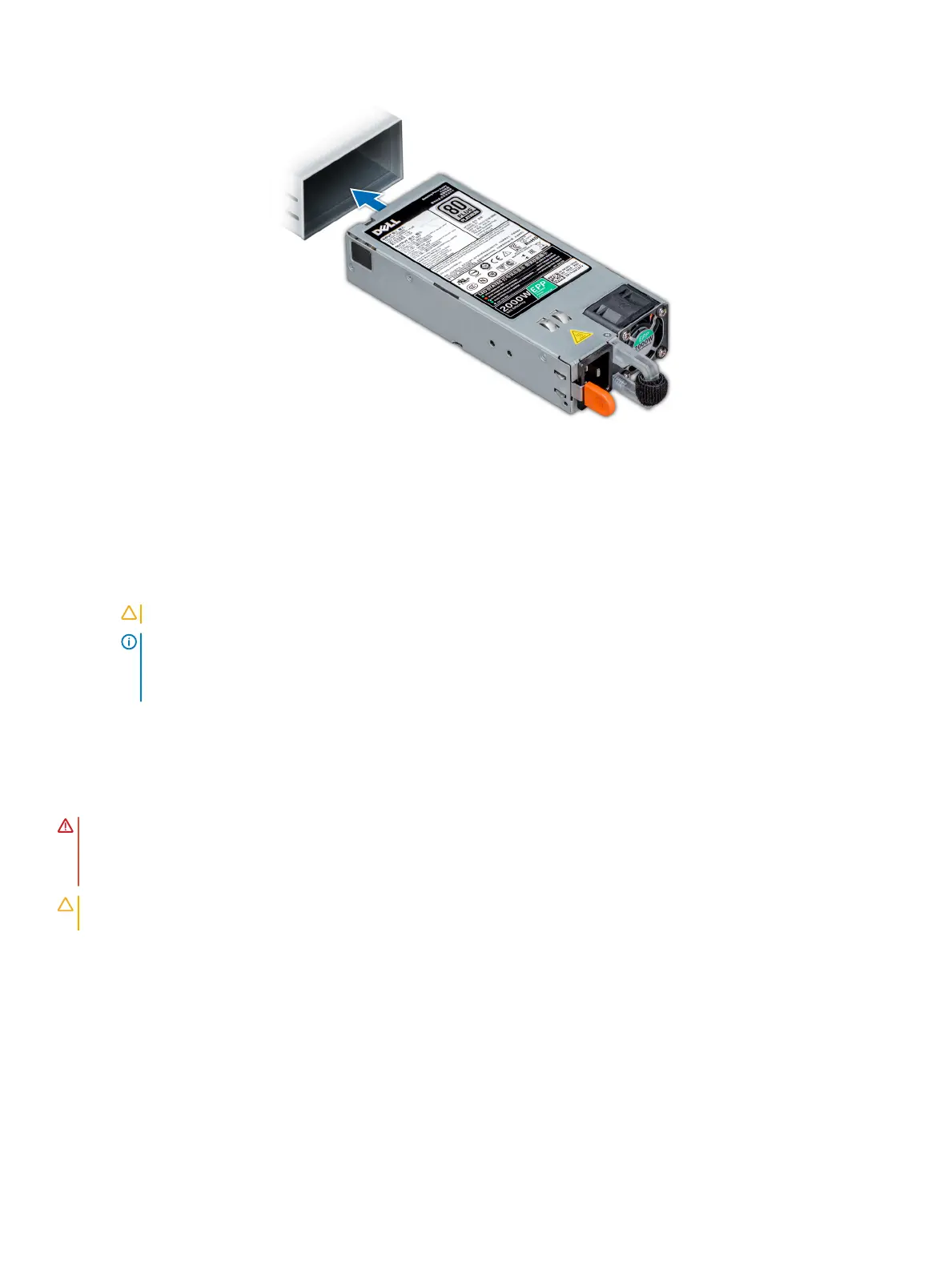 NOTE: When installing, hot swapping, or hot adding a new PSU, wait for 15 seconds for the system to recognize the