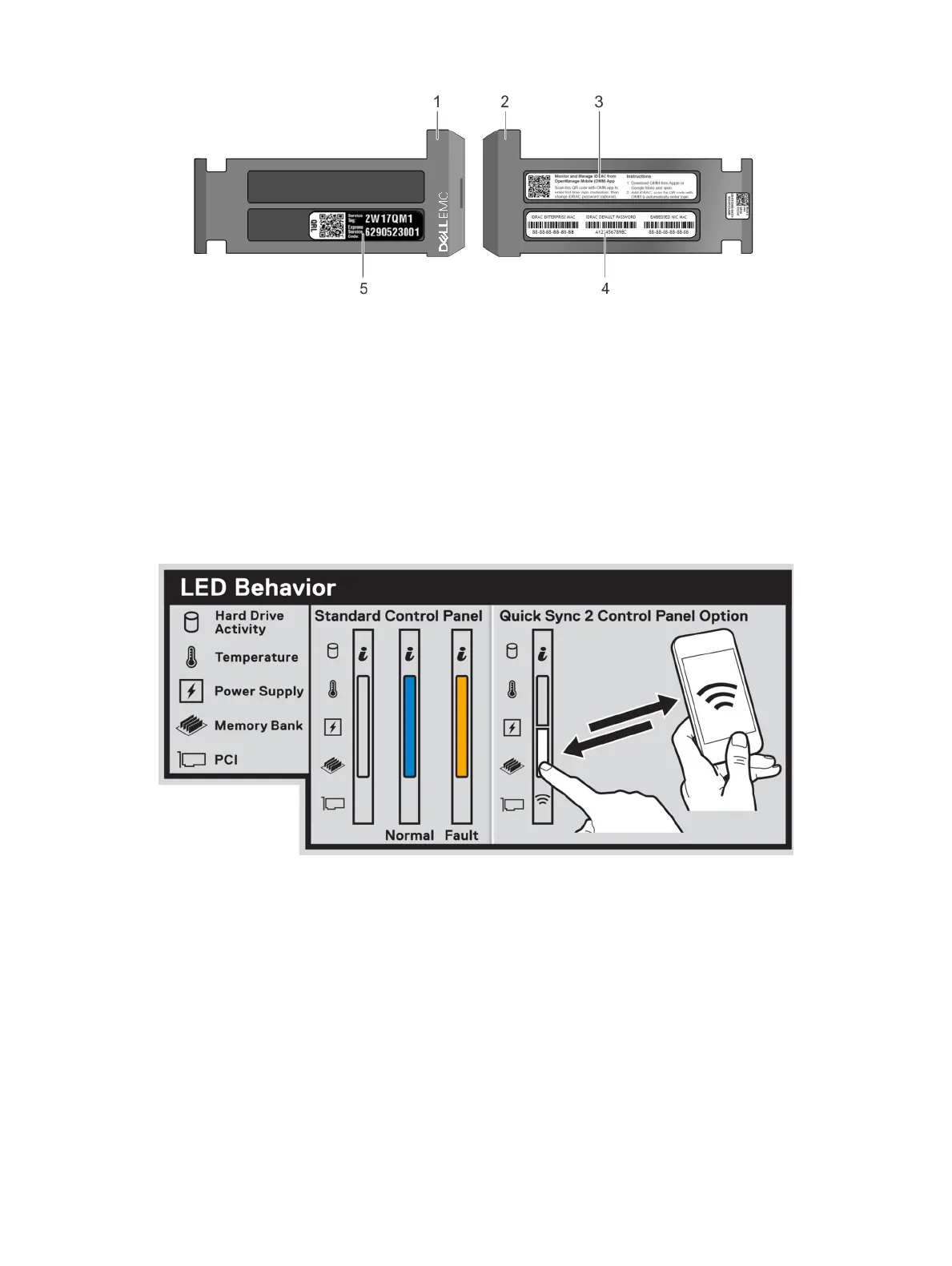 3 OpenManage Mobile (OMM) label 4 iDRAC MAC address and iDRAC secure password label