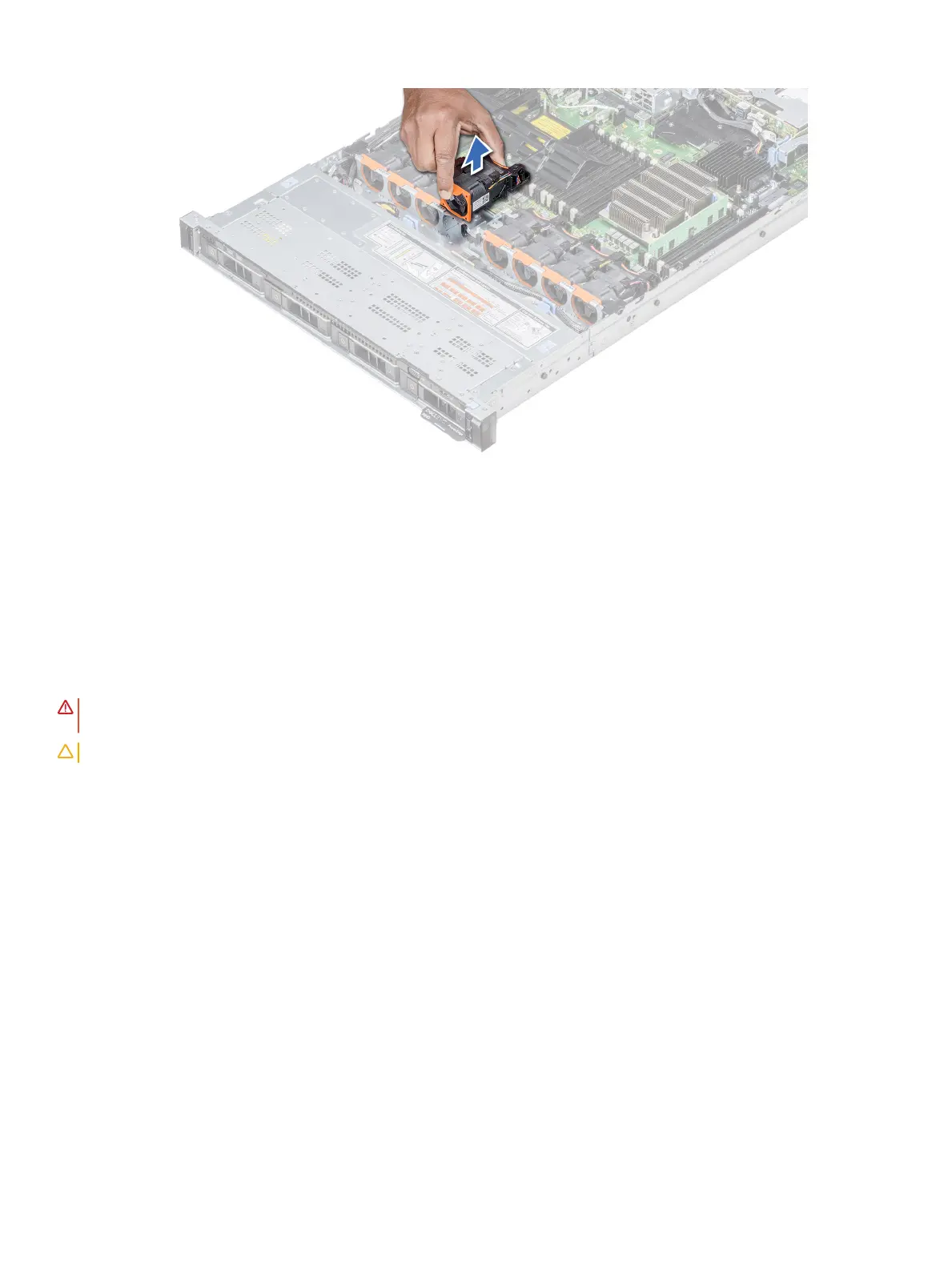 CAUTION: The cooling fans are hot swappable. To maintain proper cooling while the system is on, replace only one fan at a time.