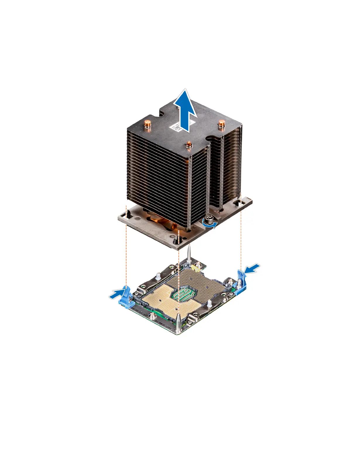 2 Pushing both blue retention clips simultaneously, lift the processor and heat sink module (PHM) processor and heat sink module
