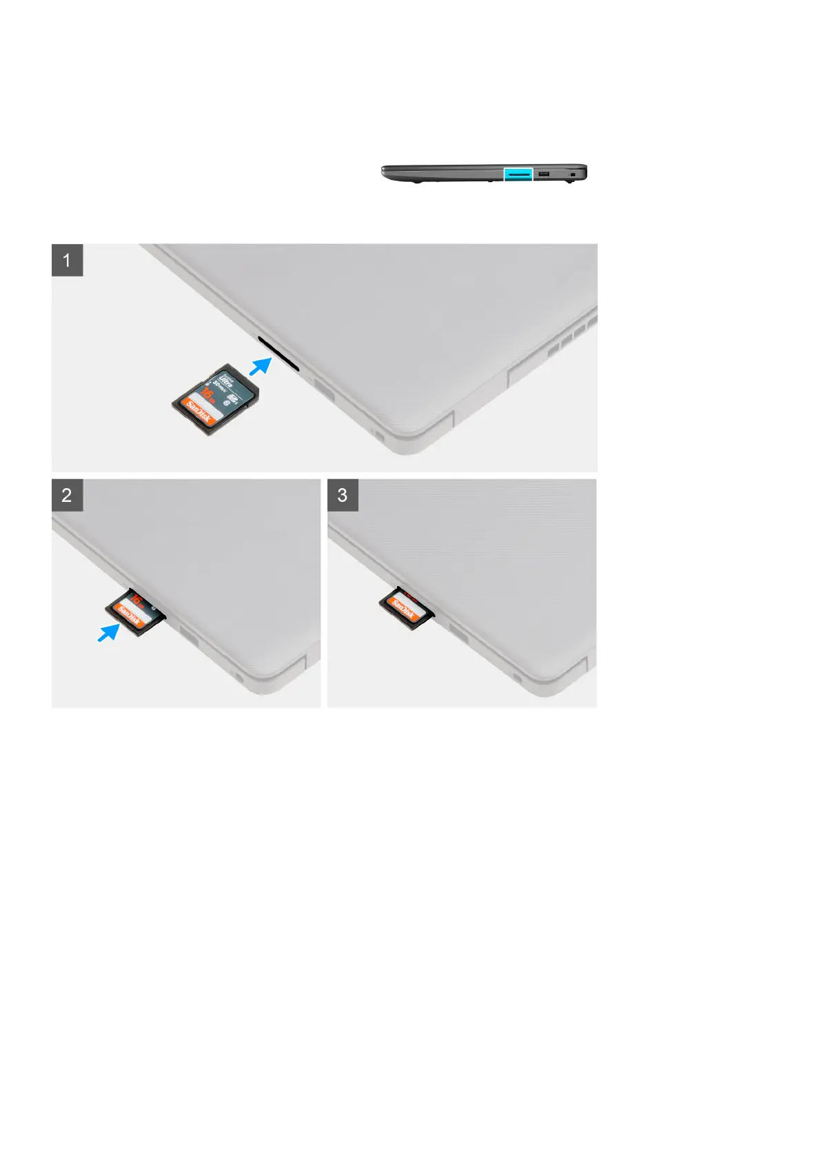 Slide the secure digital into the slot until it clicks into place.