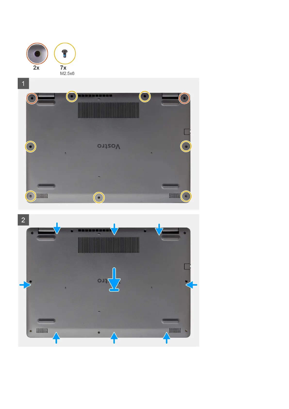 1. Remove the seven (M2.5x6) screws and loosen the two captive screws from the base cover.