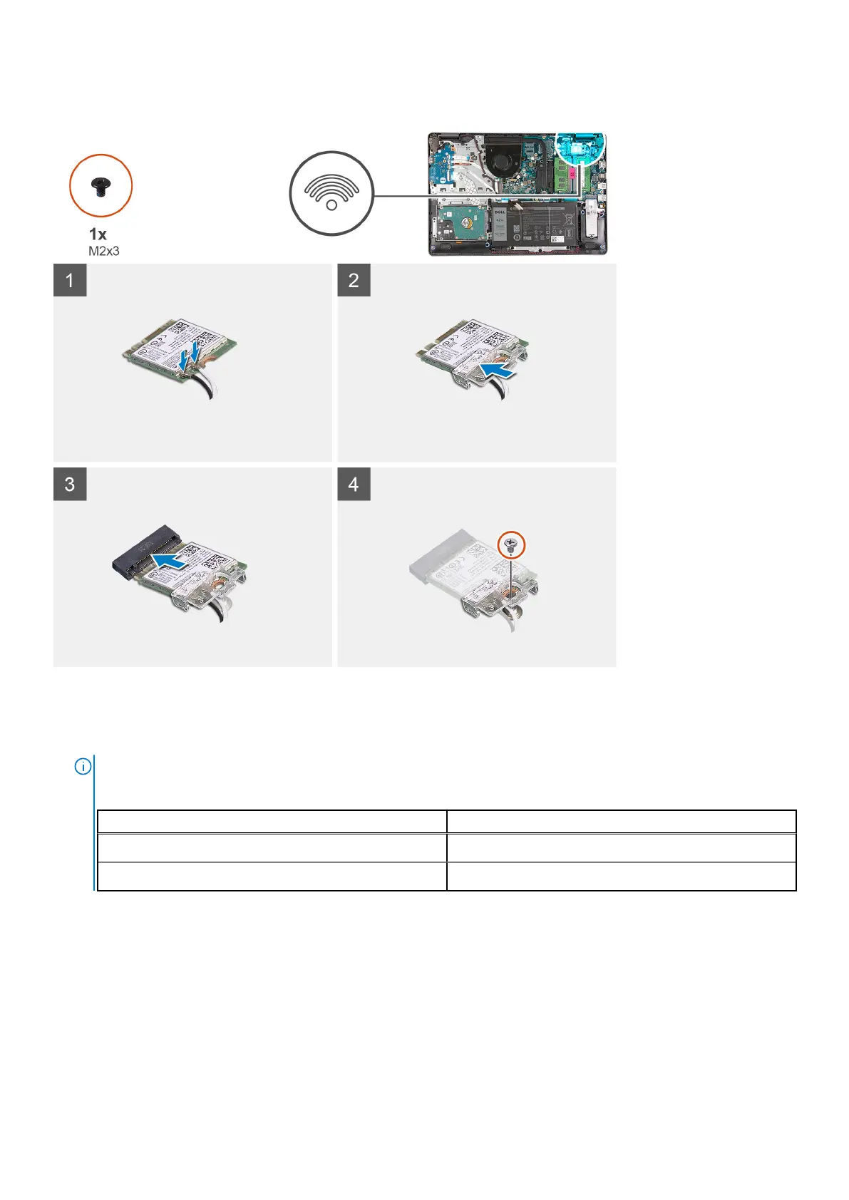 4. Replace the single (M2x3) screw to secure the WLAN bracket and the WLAN card to the palmrest.