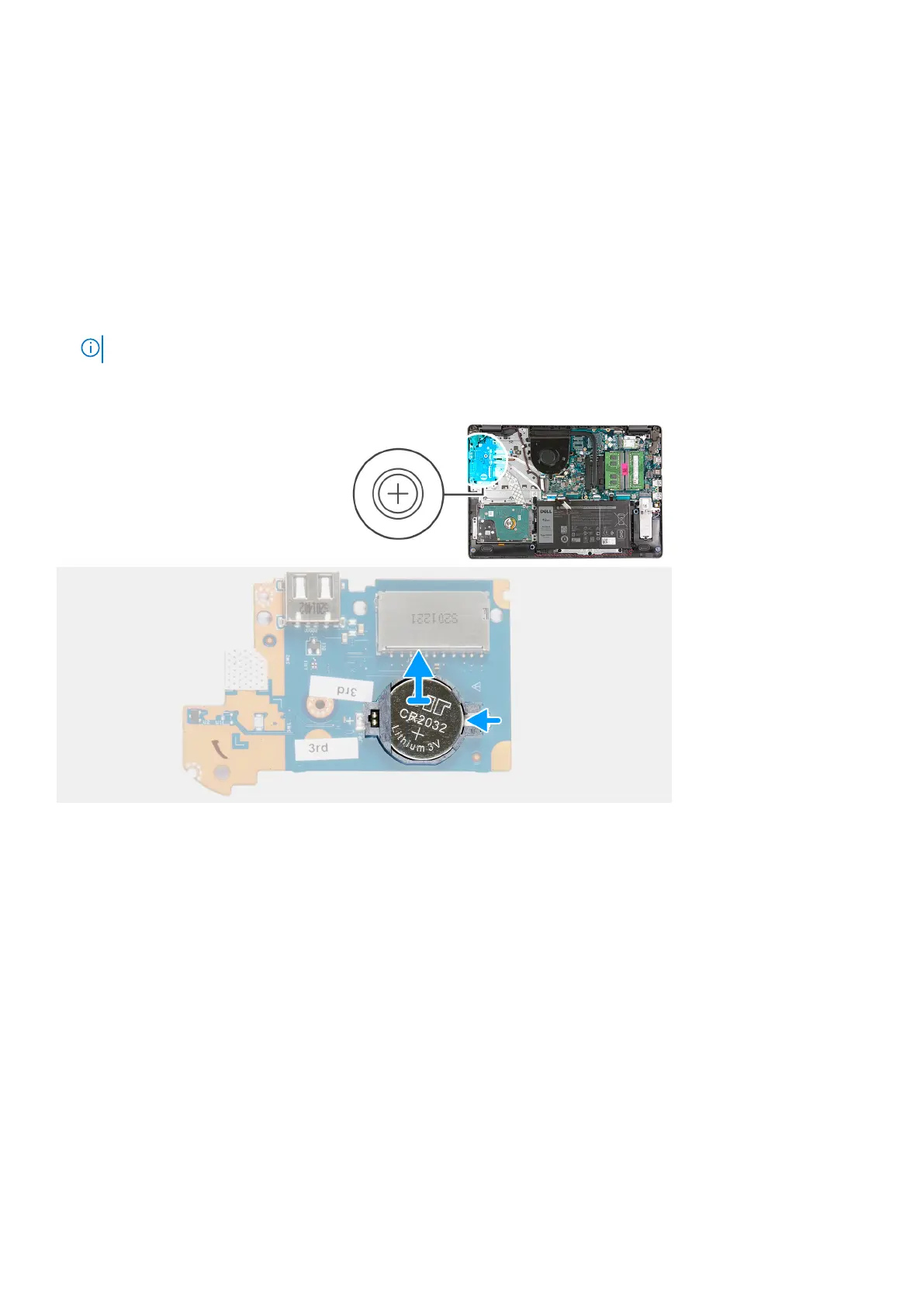 1. Use a plastic scribe to pry up the coin-cell battery from the slot on the IO daughter board.
