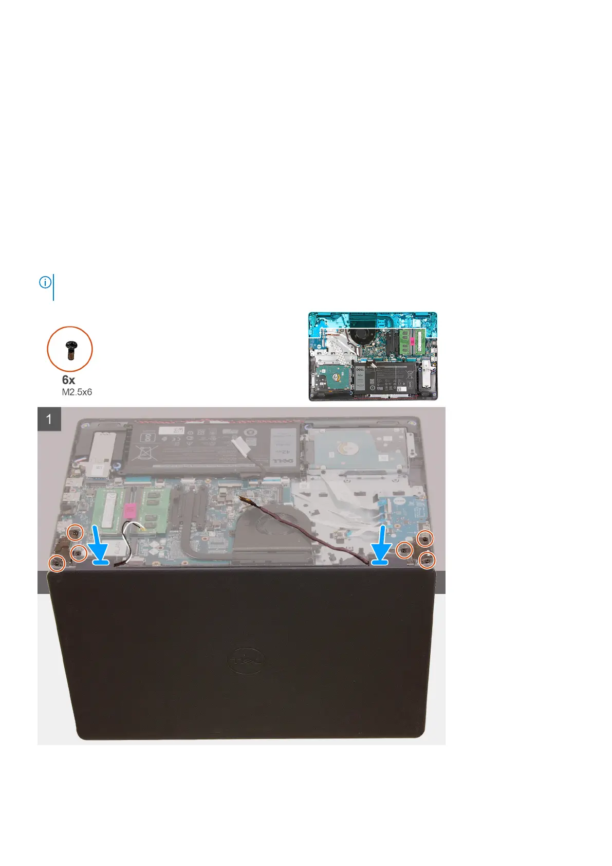 4. Remove the six (M2.5x6) screws securing the display assembly in place.