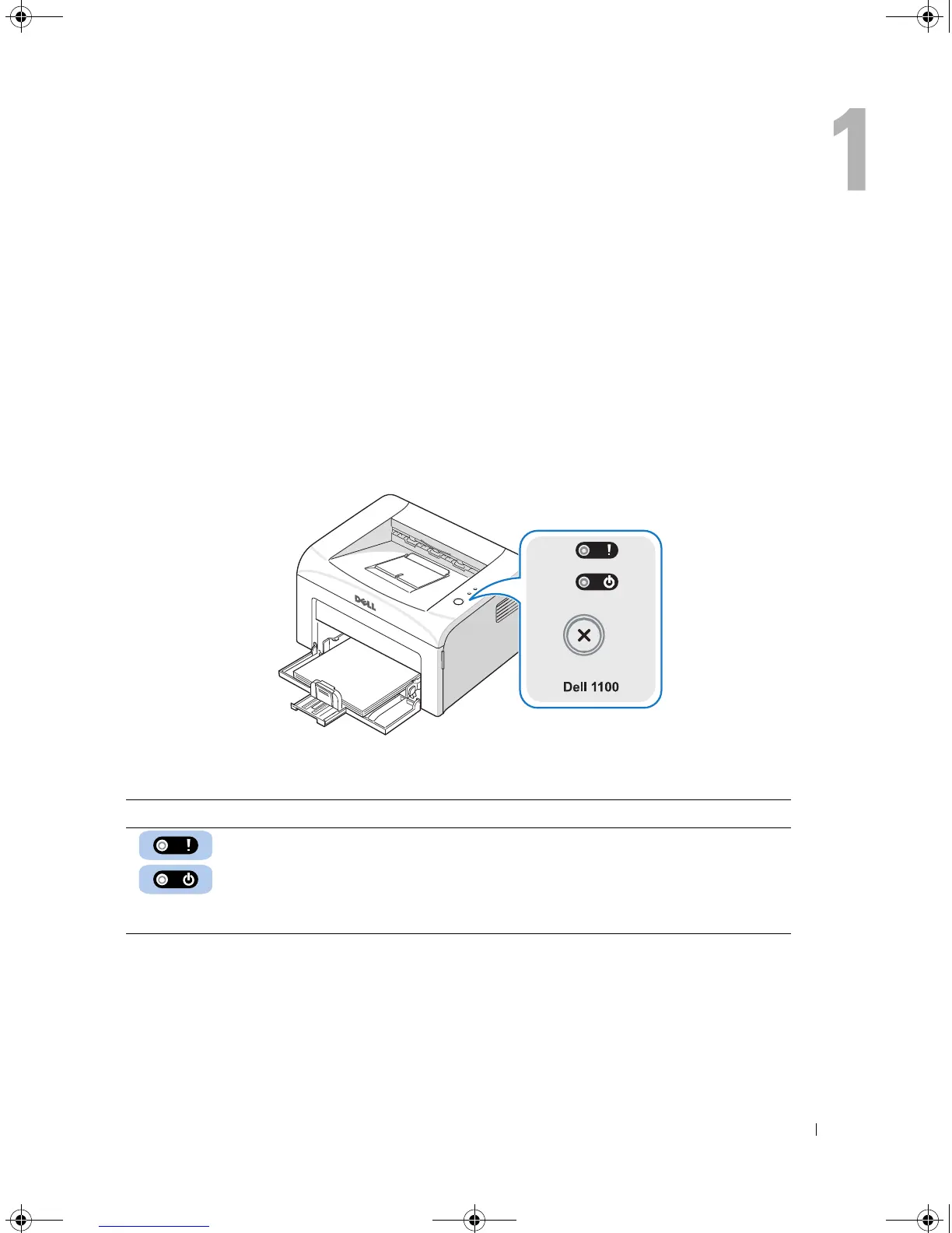 The operator panel on the top right side of your printer has two LEDs and one button.