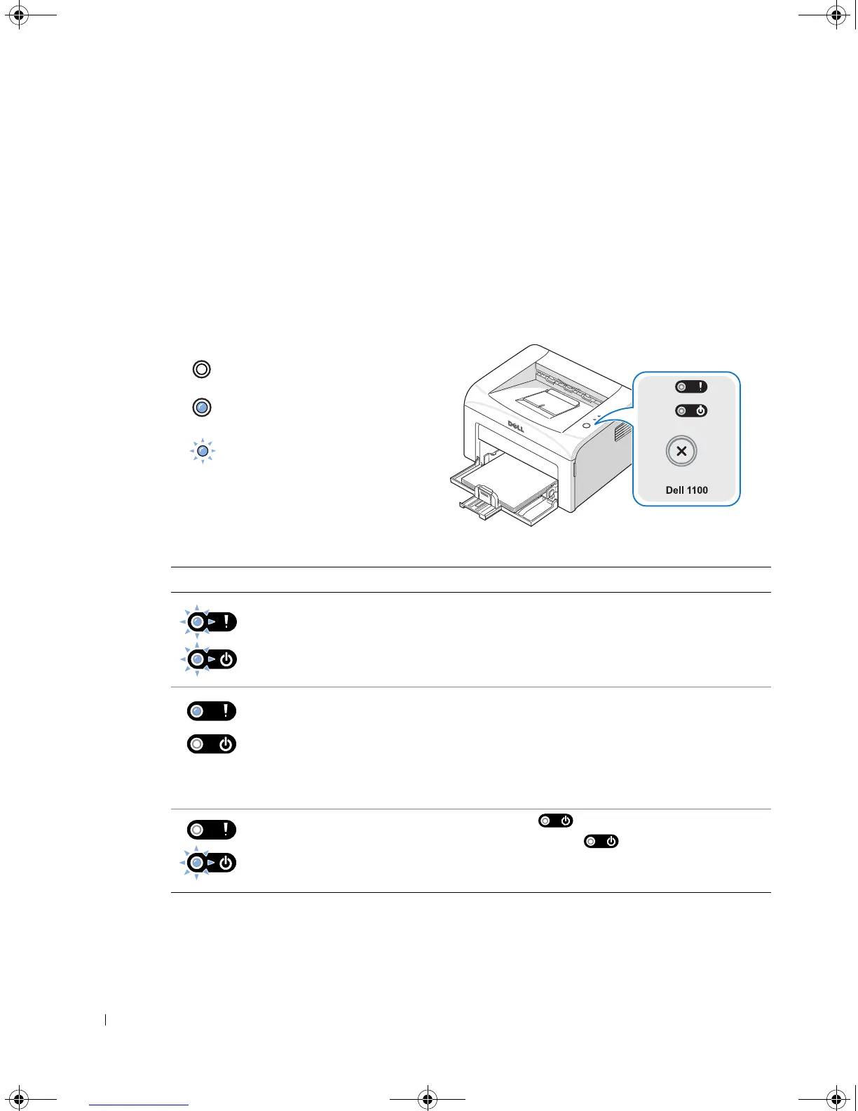 are off, on, and/or blinking indicate printer conditions such as printer status, intervention (for