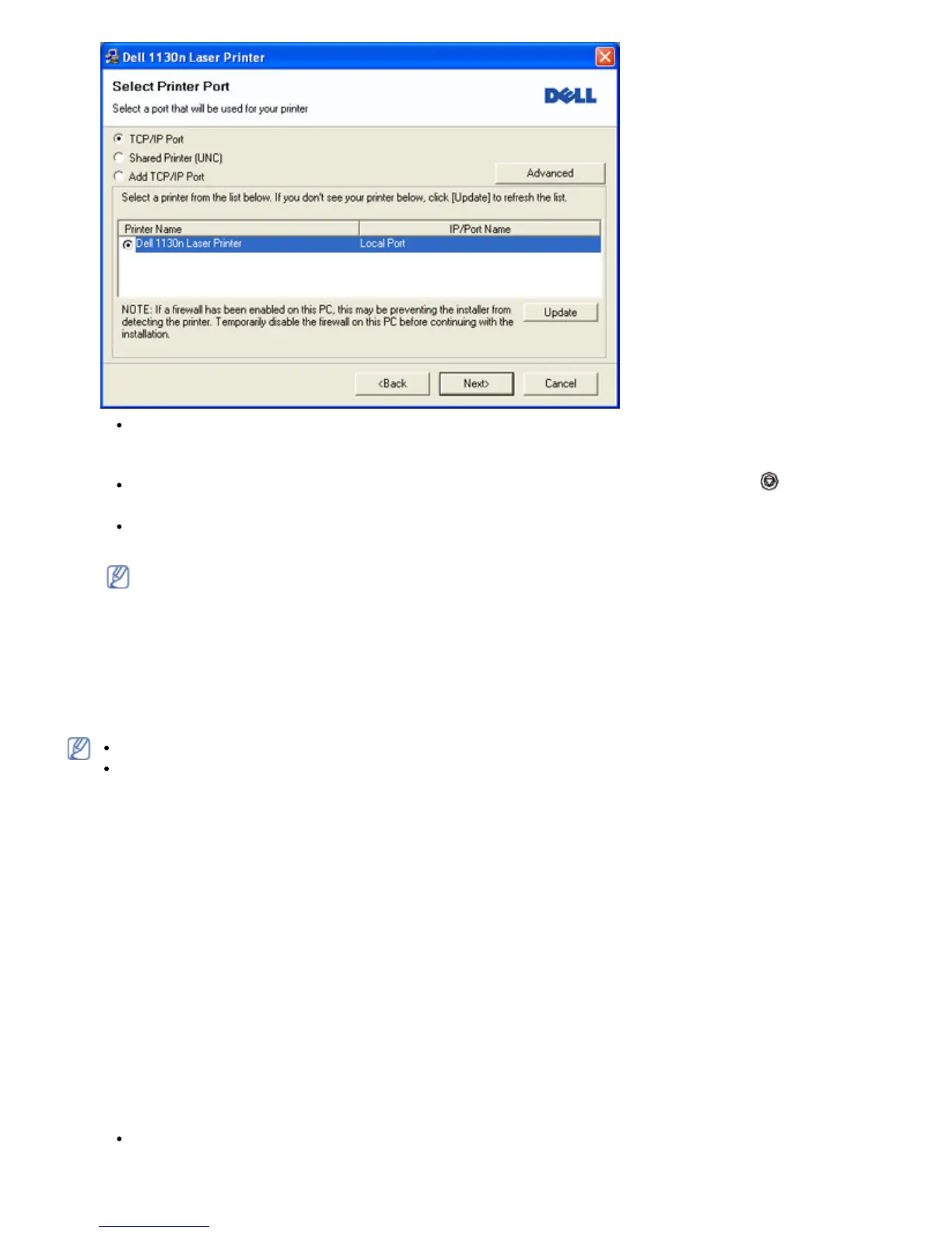 If you do not see your printer on the list, click Update to refresh the list, or select Add TCP/IP Port to add