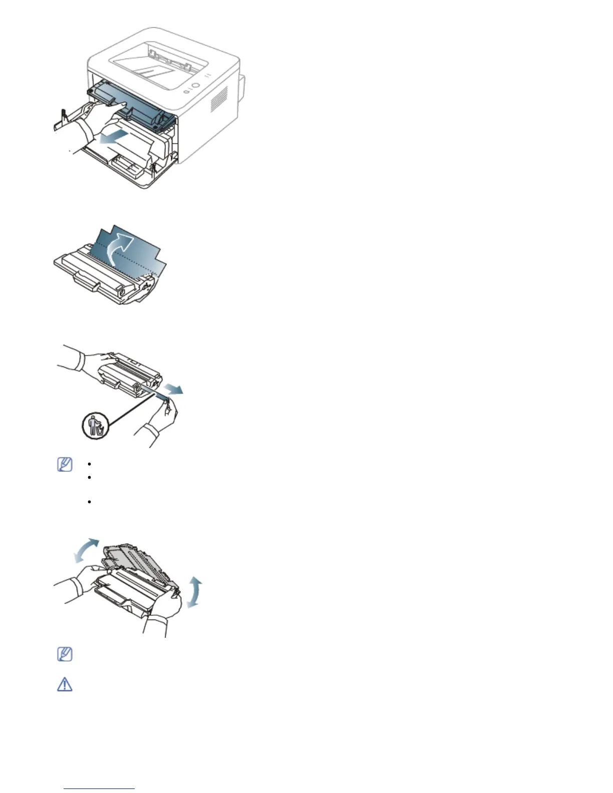 4. Remove the paper protecting the toner cartridge by pulling the packing tape.