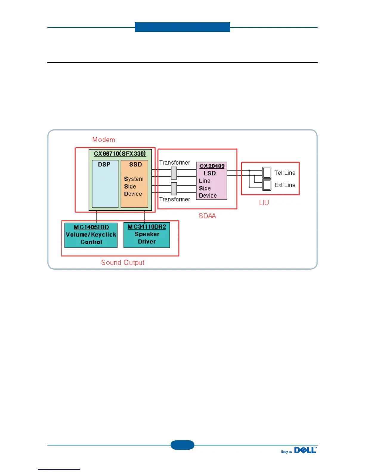 - CX20493 (LSD) : This Modem Chip LIU (Line Interface Unit) is controlled by SSD and satisfies each PSTN