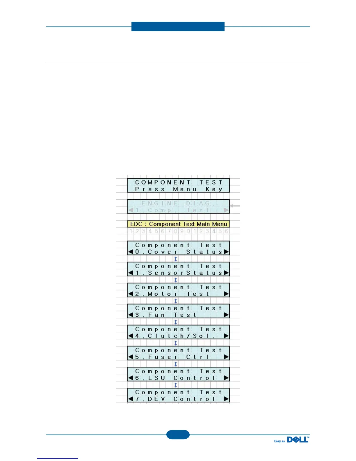 3. The message “COMPONENT TEST Press Menu Key” display on the LCD.