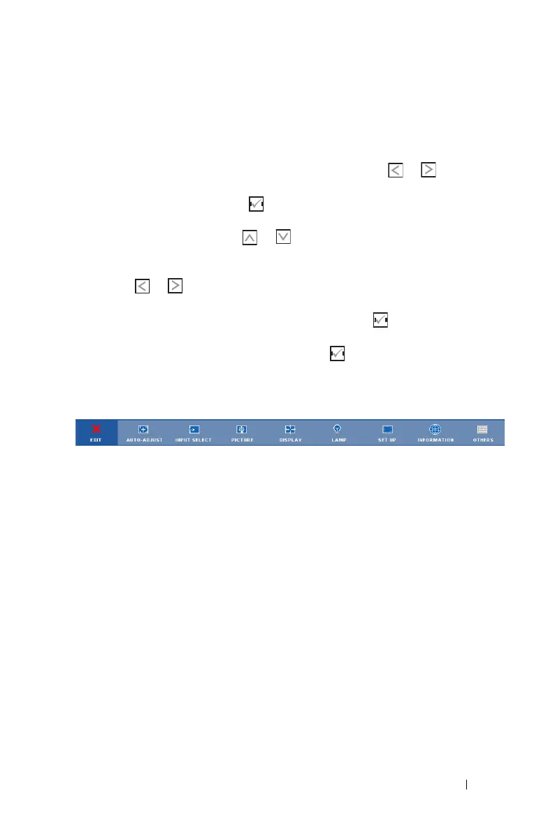 • To exit the OSD, go to EXIT tab and press the button or press the