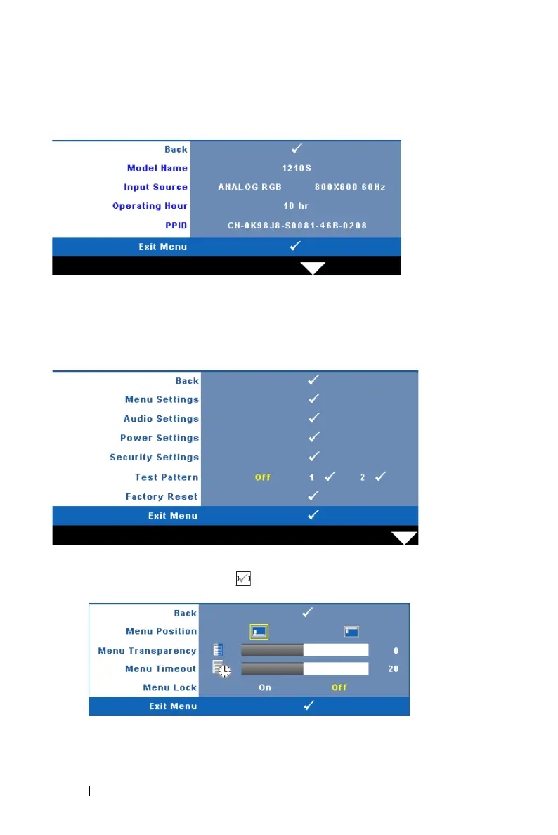 The Information menu displays the current projector settings.