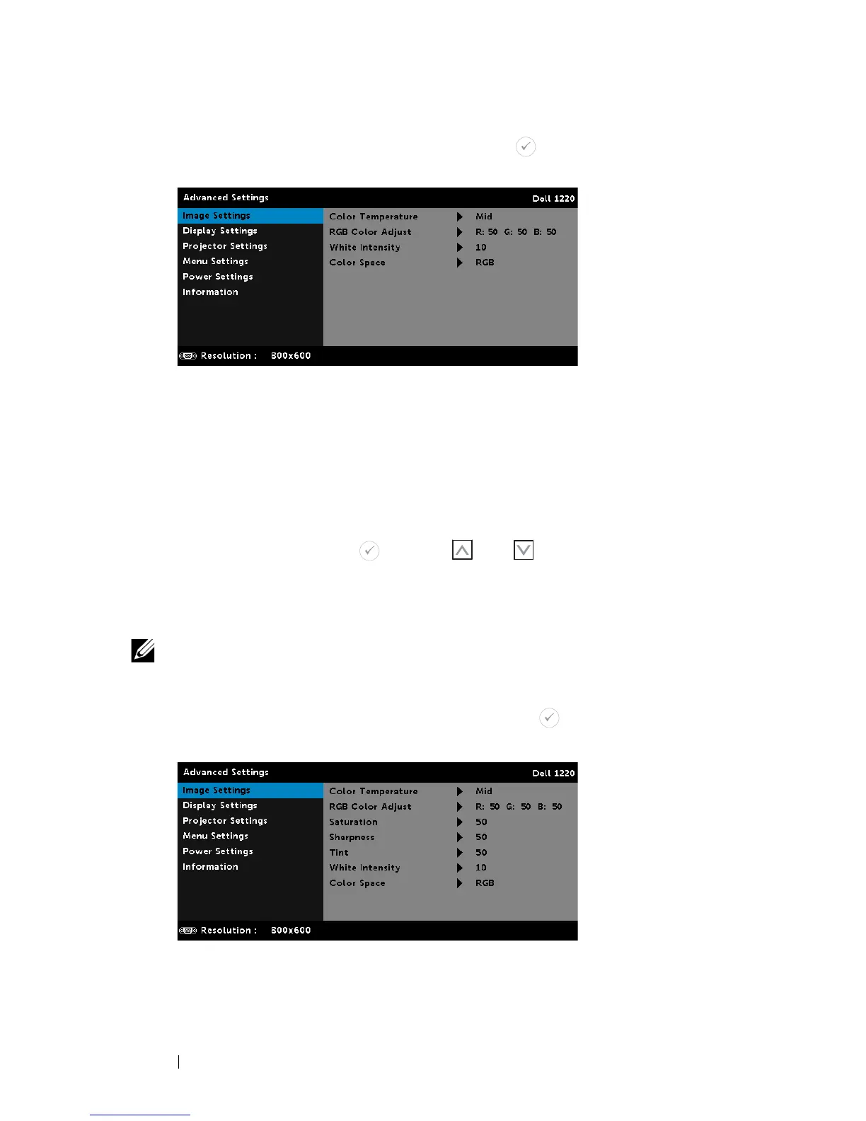 NOTE: If you adjust the settings for Color Temperature, RGB Color