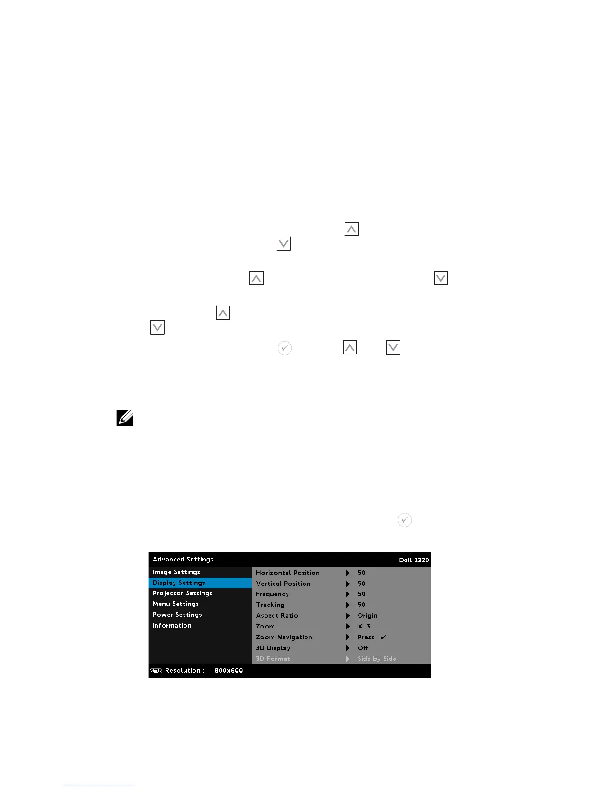 settings. The display settings menu provides the following options: